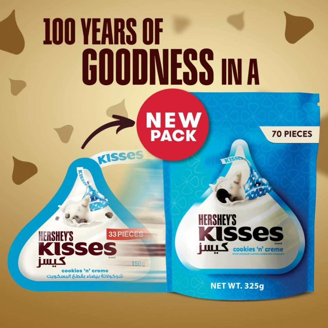 The Hershey's Kisses Cookies N' Creme is a delicious and indulgent treat that combines the classic taste of Hershey's chocolate with crunchy cookie pieces. Each bite-sized piece is individually wrapped in the iconic silver foil and shaped like a Hershey's Kiss. This pack includes two 100g bars perfect for enjoying on your own or sharing with friends and family. Whether you're a chocolate lover or a fan of cookies and cream these Hershey's Kisses will satisfy your sweet tooth and leave you craving for more.