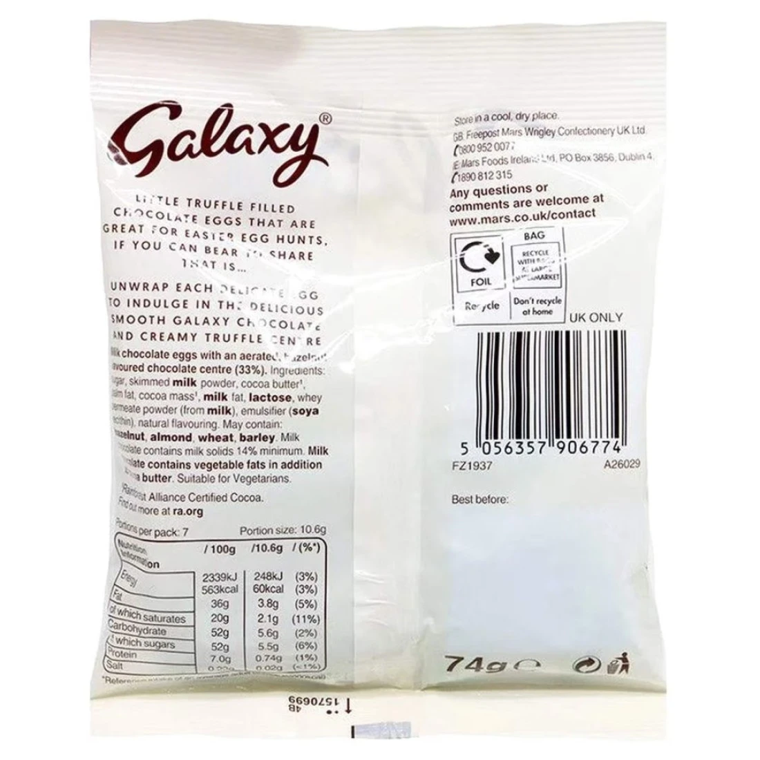 Galaxy Hazelnut Creamy Truffle Mini Eggs, 74g