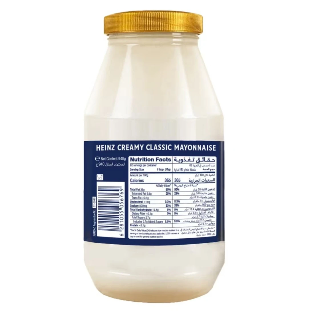 The Heinz Mayonnaise Creamy Classic Jar is a large 940g jar of creamy and delicious mayonnaise. Made with high-quality ingredients this mayo is perfect for adding a rich and creamy texture to your favourite sandwiches salads and dips. Whether you're making a classic BLT or a homemade potato salad this Heinz mayo will elevate your dishes to new levels of flavour. Plus with this promo-size jar, you'll have plenty of mayo to last you through many meals. So stock up on this Heinz Mayonnaise Creamy Classic Jar and take your meals from good to gourmet.