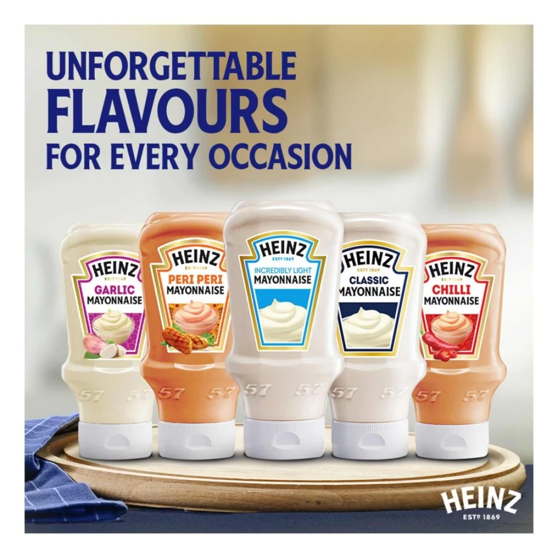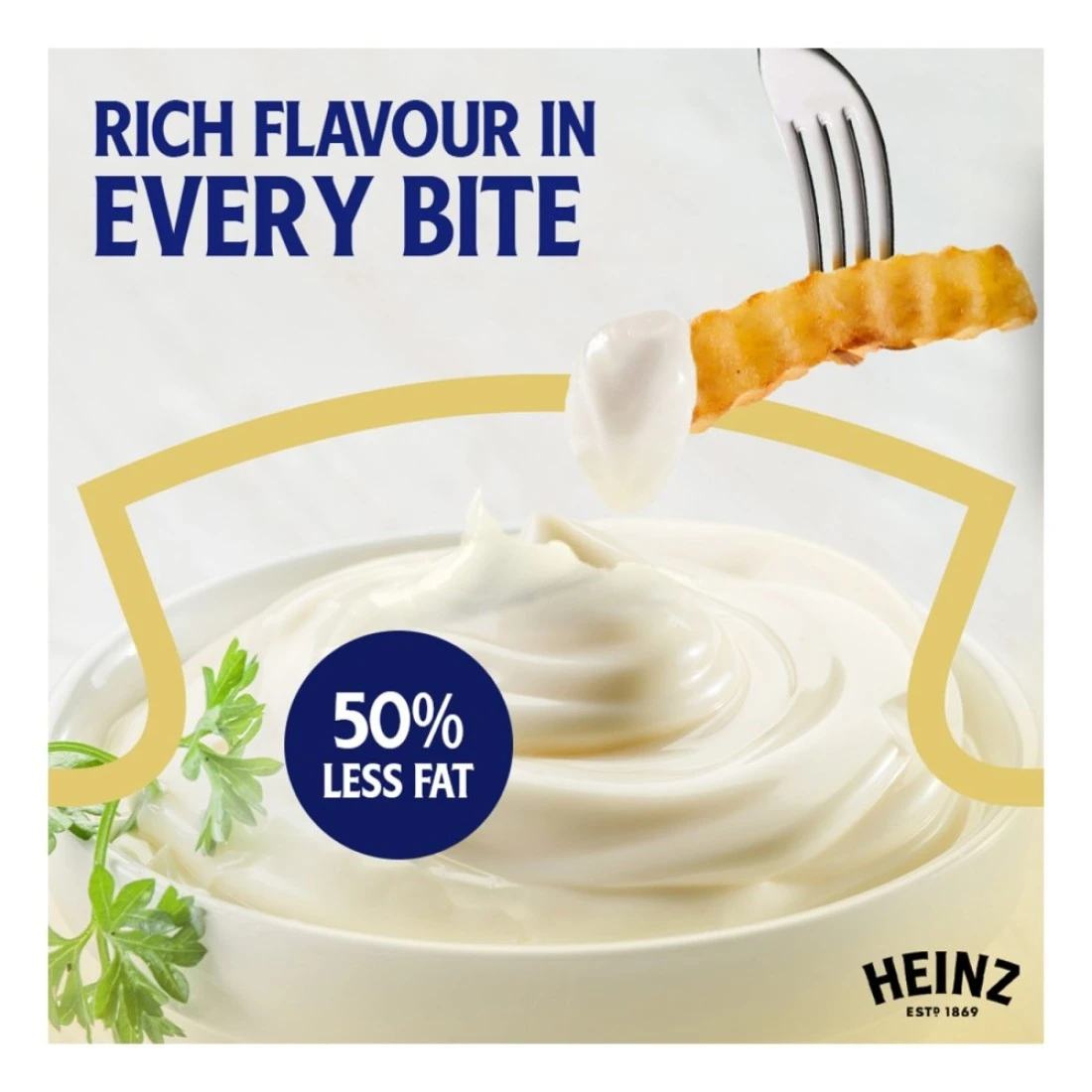 - CREATED BY EXPERTS: Heinz has applied its expertise to develop a delicious tasting condiment to go with everyday foods like salads sandwiches chips or finger foods and our famous Heinz Incredibly Light Mayonnaise with 60% less fat than regular mayo is the result.