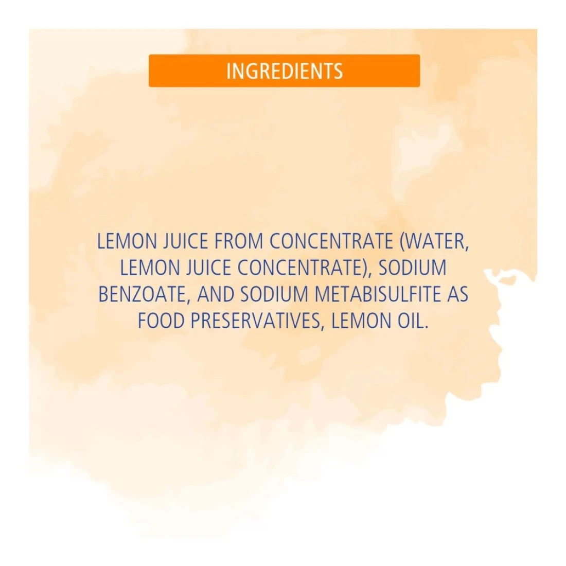 ingredients : Lemon Juice From Concentrate (Water, Lemon Juice Concentrate), Sodium Benzoate, And Sodium Metabisulfite As Food Preservatives, Lemon Oil.