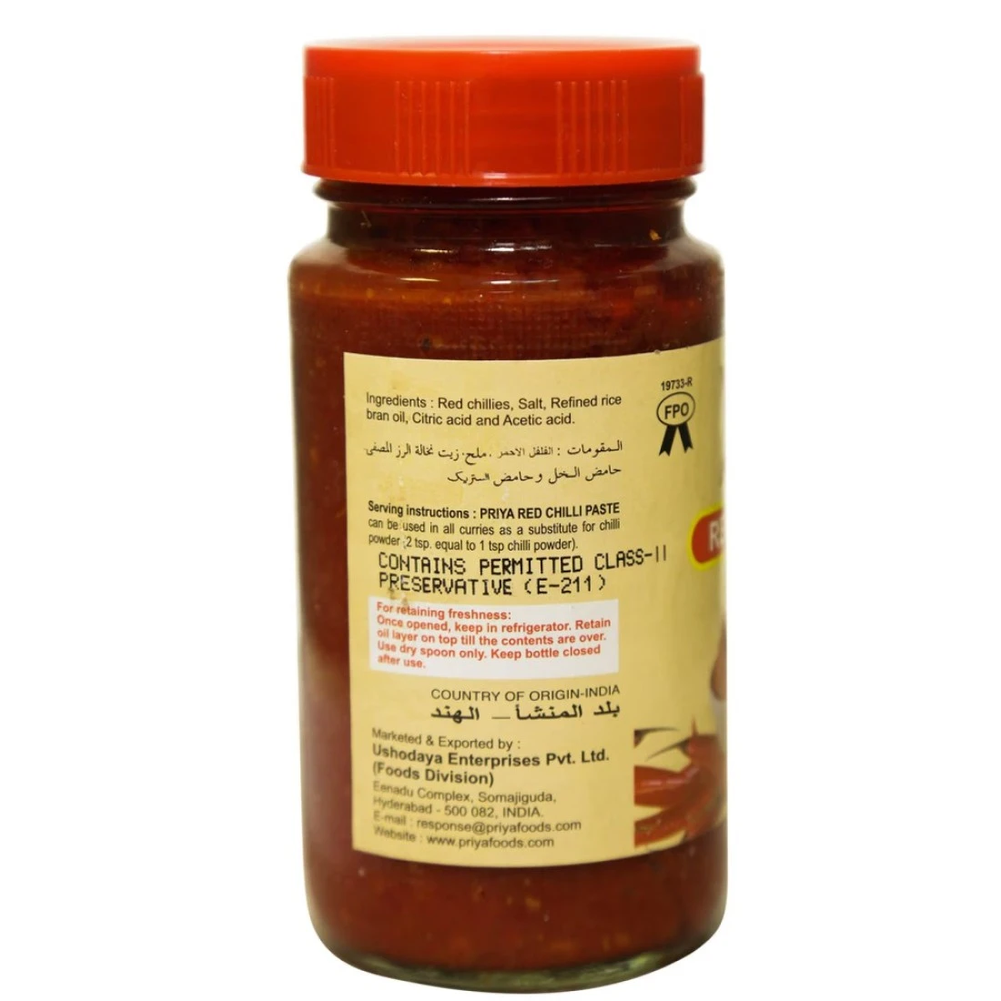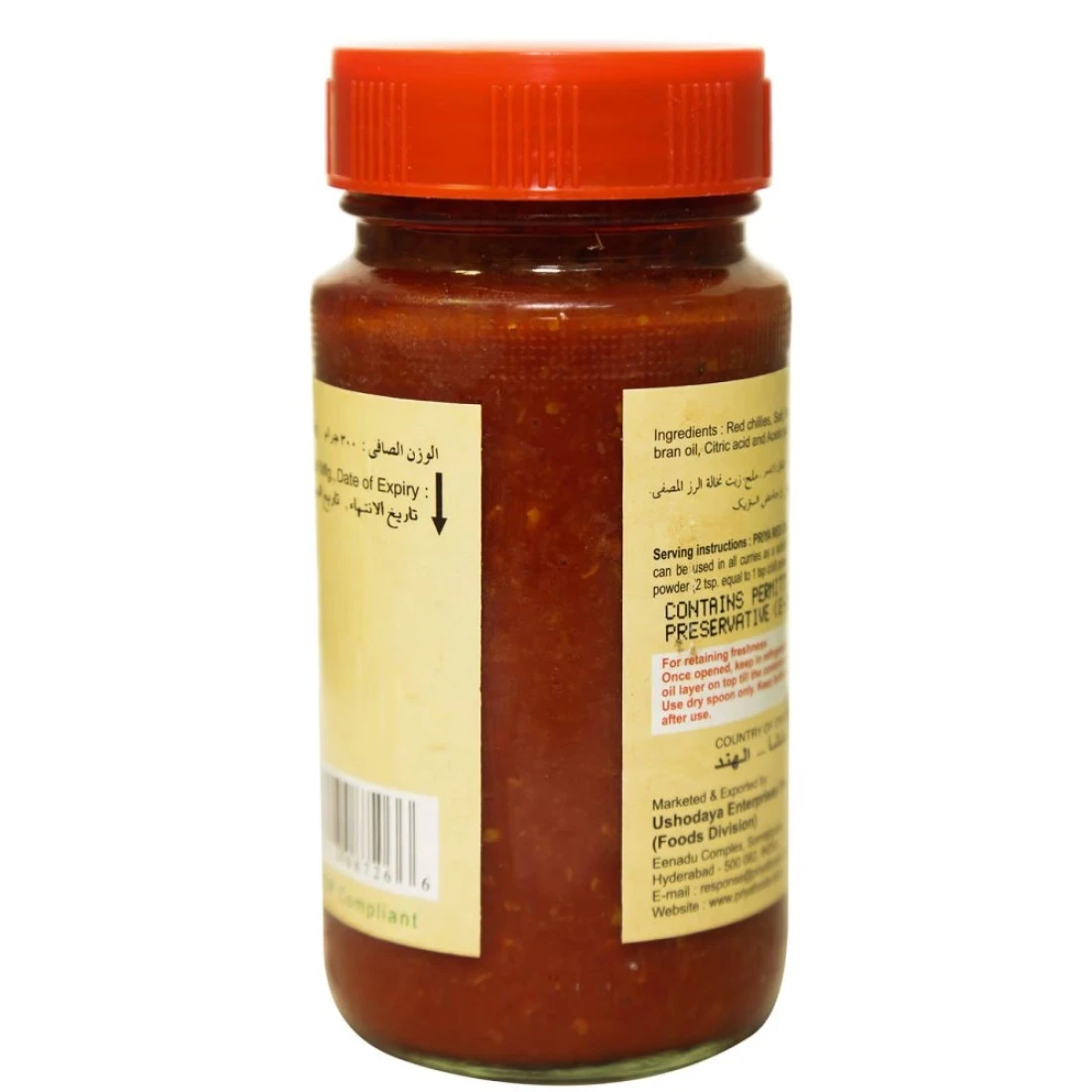 ingredients : Red Chillies. Salt, Refined Rice Bran Oil, Citric Acid and Acetic Acid.