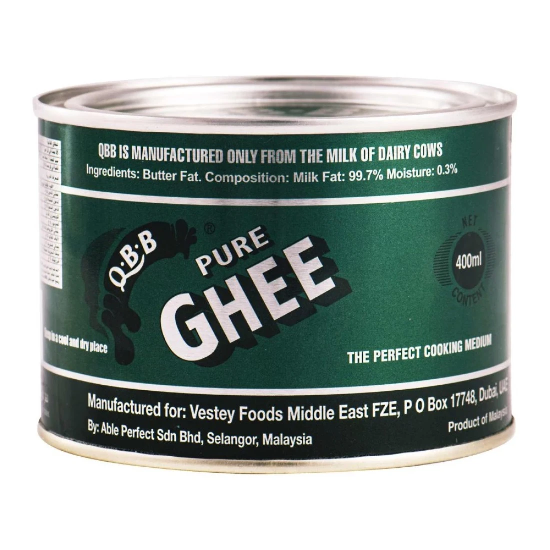QBB Pure Ghee is a premium quality clarified butter made from pure cow's milk. It is made using traditional methods to ensure the highest quality and purity. This 400ml pack is perfect for those who enjoy the rich and aromatic flavour of ghee in their cooking. It can be used in a variety of dishes from traditional Indian recipes to sautéing vegetables and even baking. QBB Pure Ghee is known for its smooth texture and delicious taste making it a must-have ingredient in every kitchen.