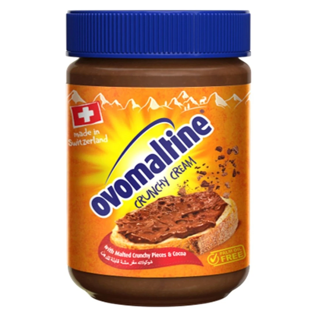 - Try Ovomaltine Crunchy Cream on your bread roll croissant or crêpe and use it as an ingredient for your cakes pastries and ice cream