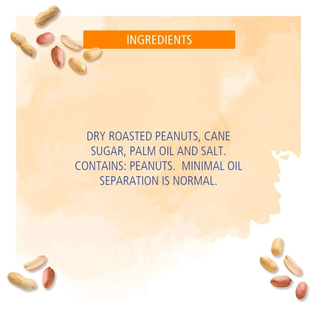 ingredients : Dry Roasted Peanuts, Cane Sugar, Palm Oil And Salt