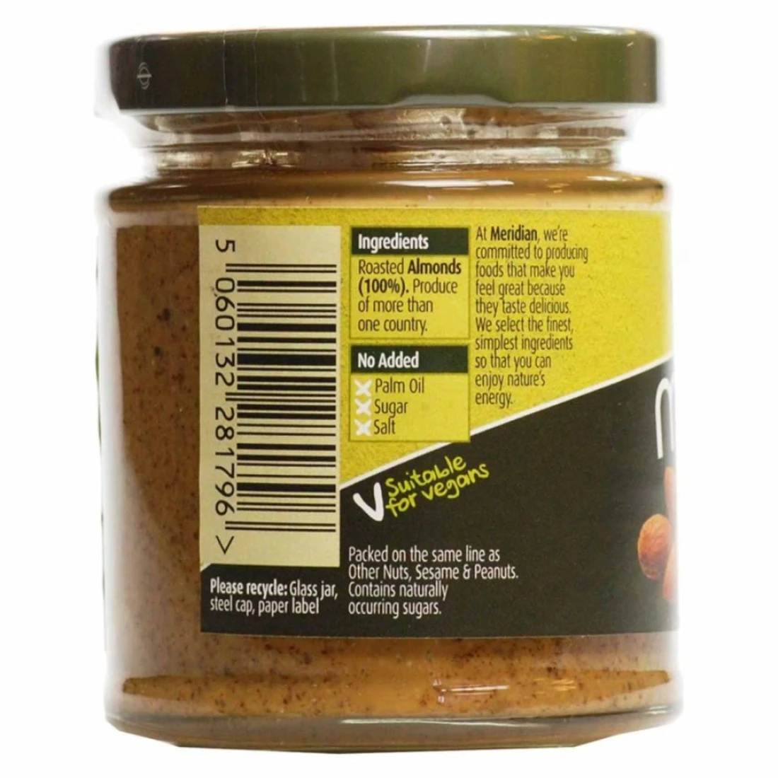 - Meridian smooth almond butter is made using 100% almonds