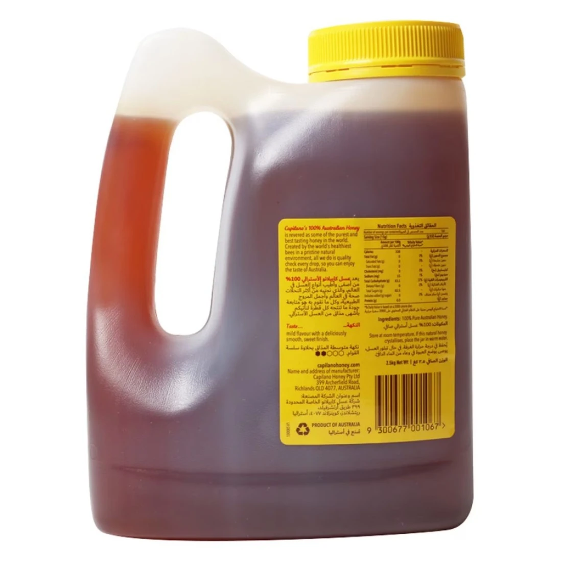 Capilano Pure Honey 2.5kg is a high-quality natural honey that is sourced from the pristine Australian forests. It is made from the nectar of bees that collect pollen and nectar from a variety of flowers. The honey is carefully harvested and produced to retain its rich flavour and aromatic properties. With its smooth texture and golden colour Capilano Pure Honey is a versatile sweetener that can be used in cooking baking or as a delicious addition to tea or toast. It is also a great source of natural energy and offers various health benefits.