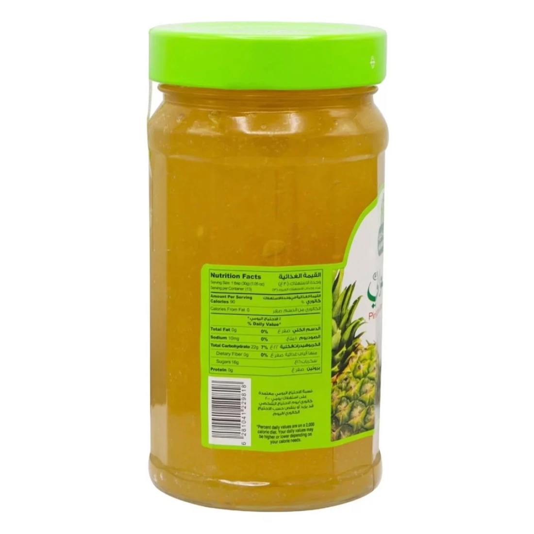 ingredients : Pineapple 45%, Sugar, Glucose, Pectin (Thickening Agent E440), Citric Acid (Acidity Regulator E330), Natural Identical Pineapple Flavour, Soluble Solids 65%