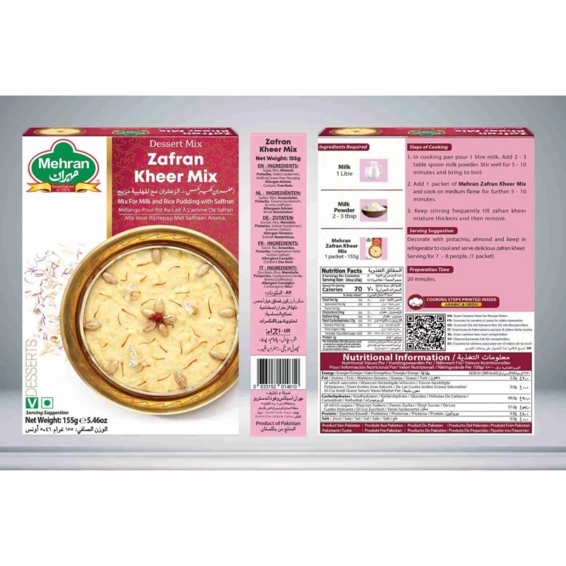 Mehran Zafran Kheer Mix is a delicious and convenient dessert mix that allows you to easily make traditional South Asian rice pudding at home. Made with high-quality ingredients including saffron rice and dry fruits this mix delivers an authentic and rich flavour. With just a few simple steps you can create a creamy and aromatic kheer that will satisfy your sweet tooth. Perfect for special occasions or a simple indulgence Mehran Zafran Kheer Mix is a must-try for fans of this beloved dessert.
