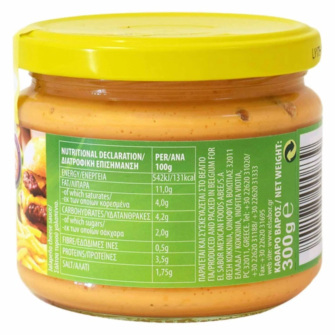 El sabor Jalapeno Cheese Dip is a delicious and creamy dip made with real jalapeno peppers and cheeses. It has a spicy kick that adds excitement to any dish or snack. Perfect for dipping chips crackers vegetables or for topping burgers and sandwiches this Jalapeno Cheese Dip is a crowd-pleaser. Its smooth and creamy texture blends well with the bold and tangy flavour of jalapeno peppers creating a delightful combination that will leave you wanting more. This 300g jar of El sabor Jalapeno Cheese Dip is the perfect addition to any party or gathering adding a zesty and cheesy twist to your favourite snacks.