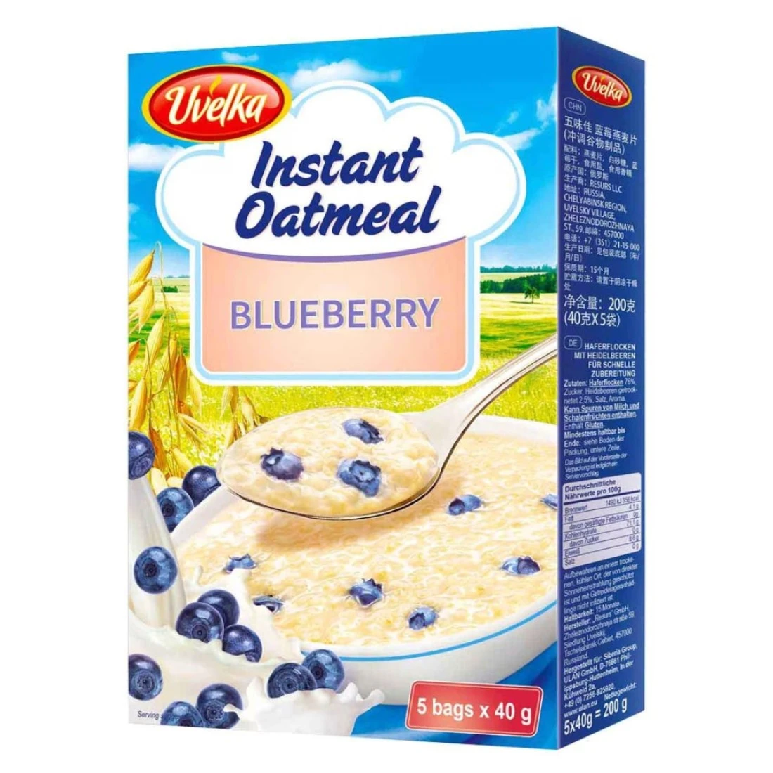 Uvelka Blueberry Instant Oatmeal 40g