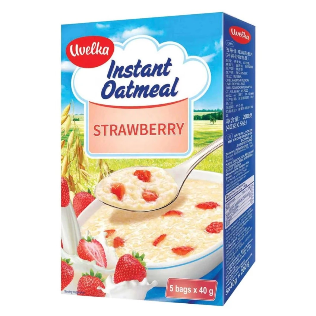 Uvelka Strawberry Instant Oatmeal is a delicious and convenient breakfast option. Made with real strawberries this instant oatmeal is packed with flavour and nutrients. Just add hot water and within minutes you'll have a hearty and satisfying meal. It's a great way to start your day providing you with essential vitamins minerals and fiber. Whether you're in a rush or simply craving a delicious bowl of oatmeal Uvelka Strawberry Instant Oatmeal is the perfect choice.