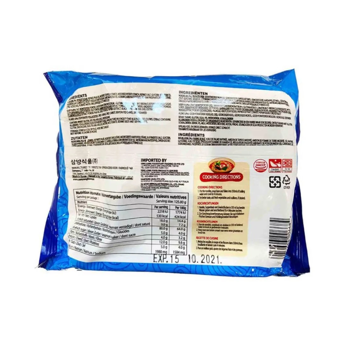 Samyang Seafood Flavour Party Ramen Noodles is a popular instant noodle dish that combines the delicious taste of seafood with the satisfying texture of ramen noodles. Each pack contains a generous serving of noodles alongside a rich and flavourful seafood soup base. The noodles are perfectly seasoned to create a tasty and savoury dish that is perfect for a quick and easy meal. Simply add boiling water wait a few minutes and you'll have a hot and delicious bowl of ramen noodles ready to enjoy. These noodles are a favourite among seafood lovers offering a convenient and tasty way to satisfy your cravings for a seafood dish.