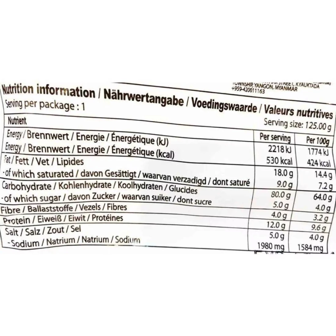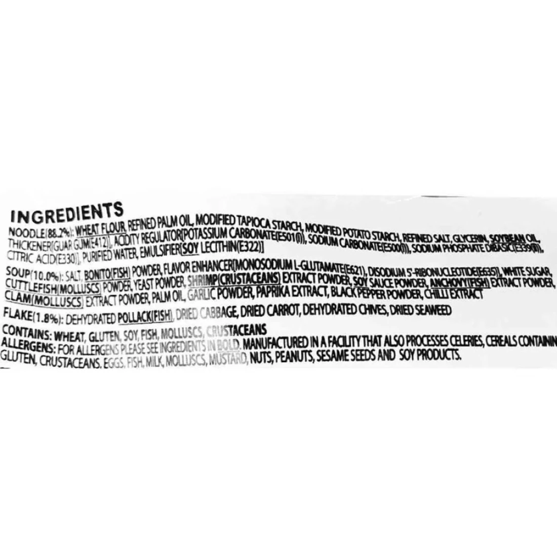 ingredients : Wheat Flour, Refined Palm Oil, Modified Tapioca Starch, Modified Potato Starch, Refined Salt, Glycerin, Soybean Oil, Guar Gum, Acidity Regulator, Sodium Carbonate