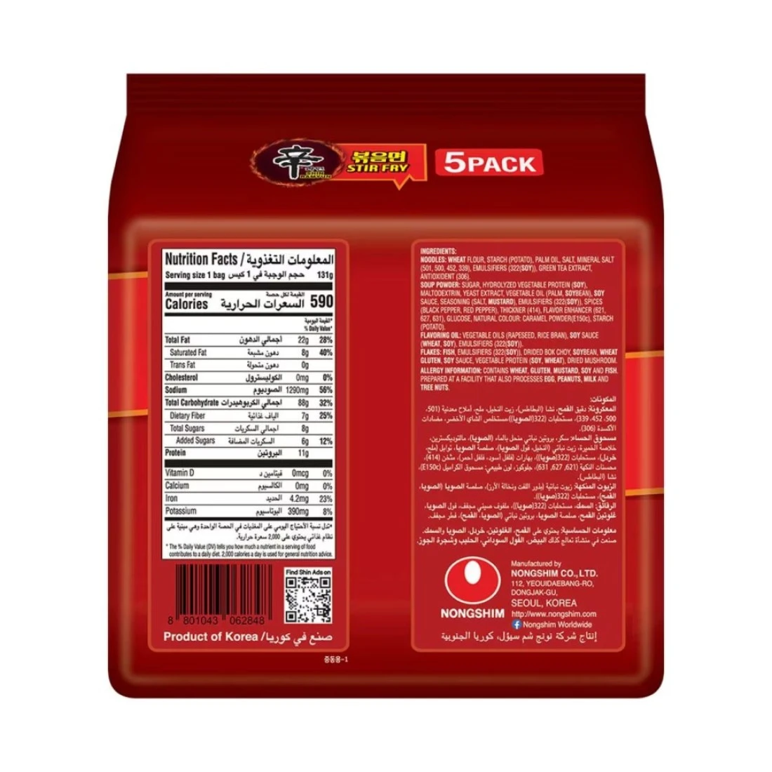 Nongshim Shin Ramyun Stir Fry Noodle 131g Pack of 5