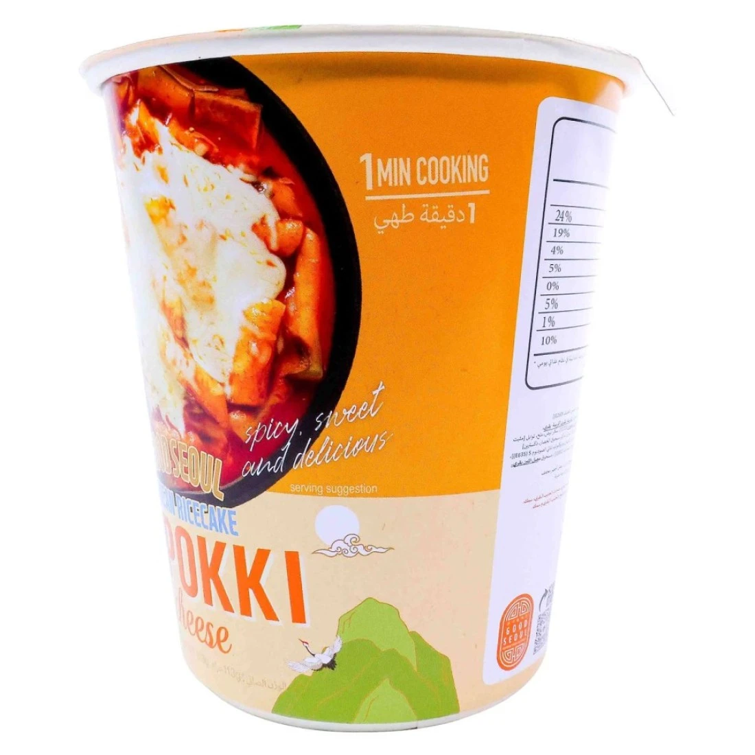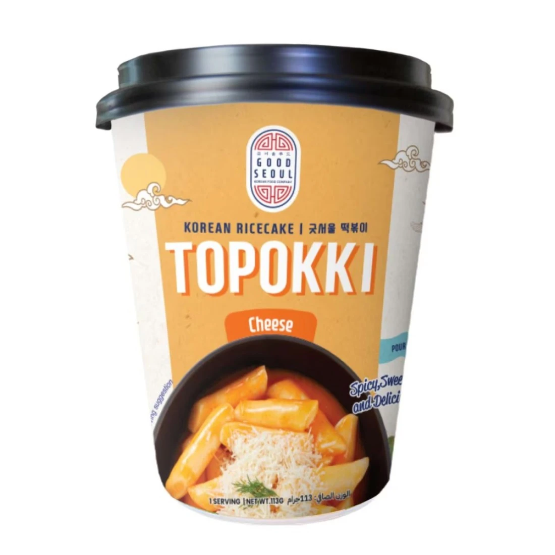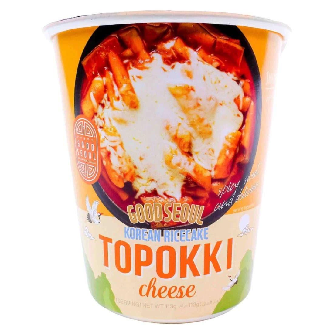 Good Seoul Topokki Cheese Korean Rice Cake is a popular Korean snack made of chewy rice cakes spicy sauce and melted cheese. This convenient pack of 113g is perfect for snacking on the go or enjoying at home. The combination of the soft rice cakes spicy sauce and gooey cheese creates a delicious and satisfying flavour that will satisfy any craving. It is easy to prepare and can be enjoyed as a quick and tasty snack or as part of a meal. Grab a pack of Good Seoul Topokki Cheese Korean Rice Cake and experience the delightful taste of Korean street food.