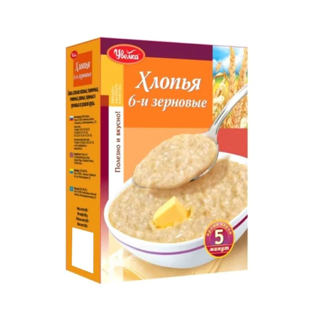 Uvelka 6 Grain Rolled Cereal Mix is a nutritious and delicious blend of six different grains including oats barley wheat rye corn and buckwheat. This mix is perfect for a healthy and filling breakfast providing you with a good source of fiber vitamins and minerals. The rolled grains are easy to prepare and can be enjoyed as hot cereal muesli or added to baked goods for added texture and flavour. Start your day off right with Uvelka 6 Grain Rolled Cereal Mix.