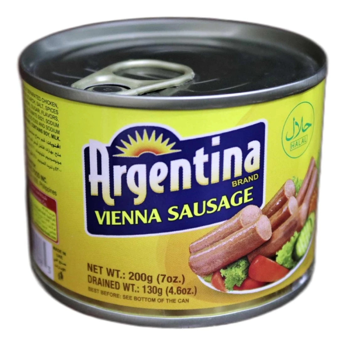 - Argentina Chicken Vienna Sausage is a canned good food which is ready-to-eat food
