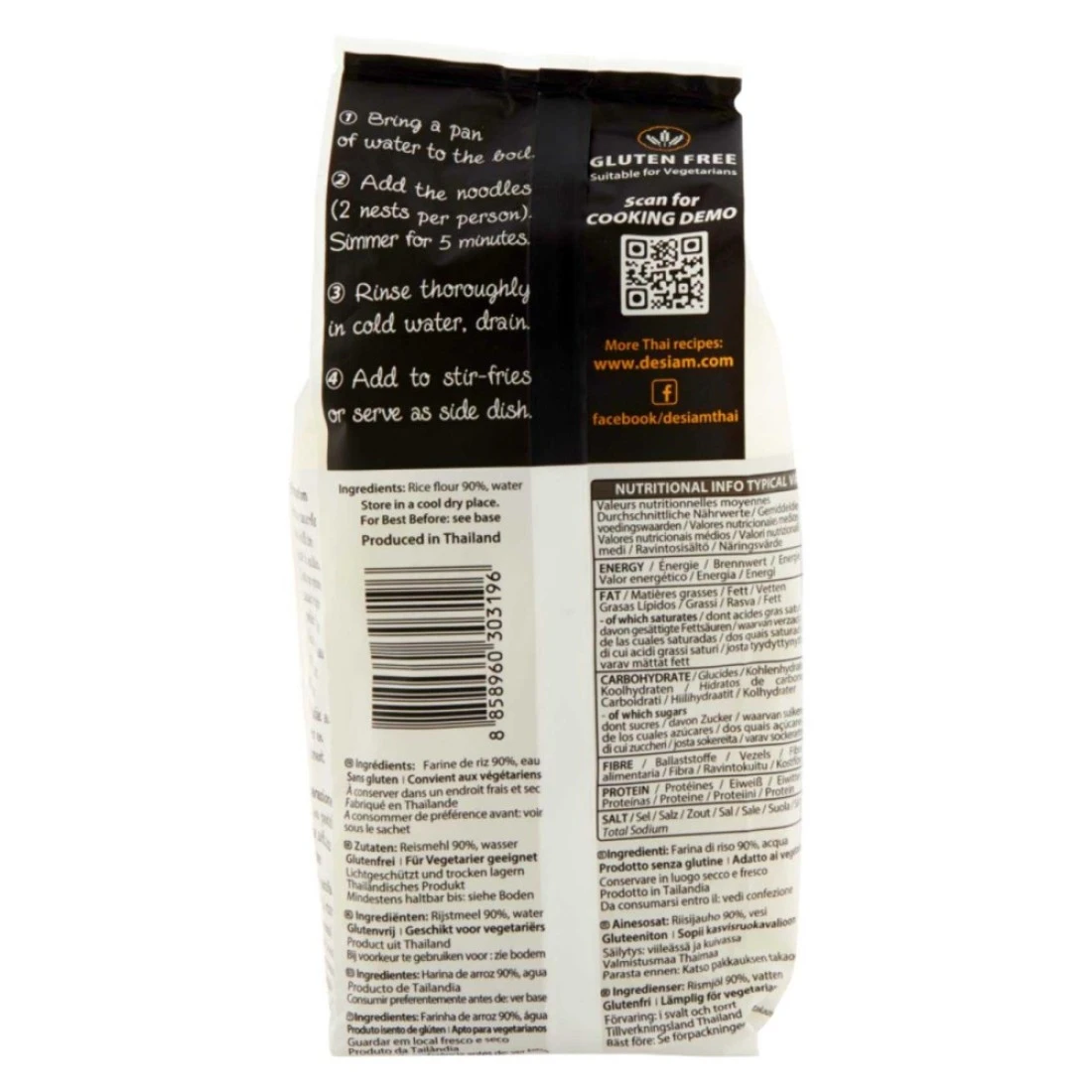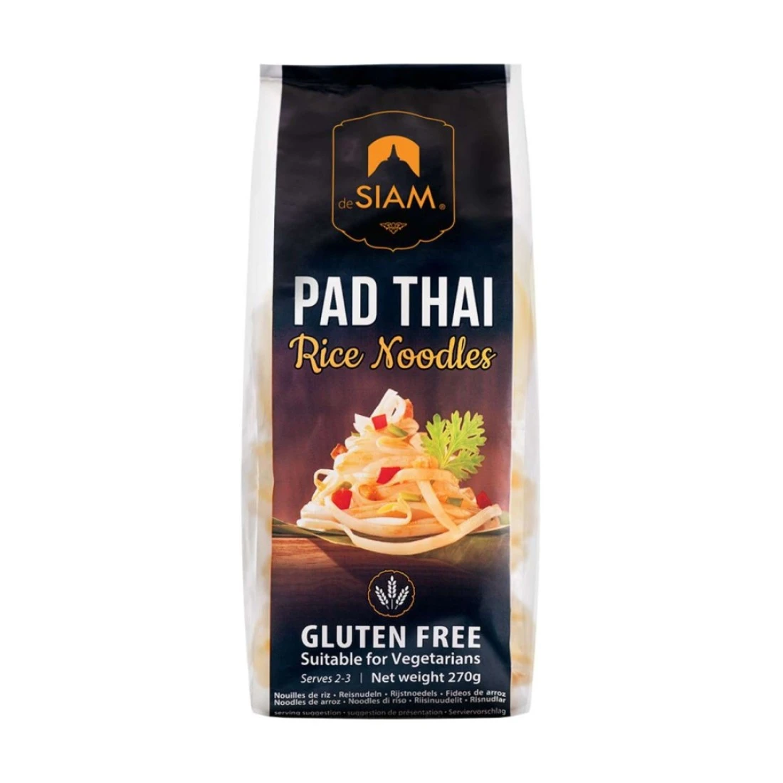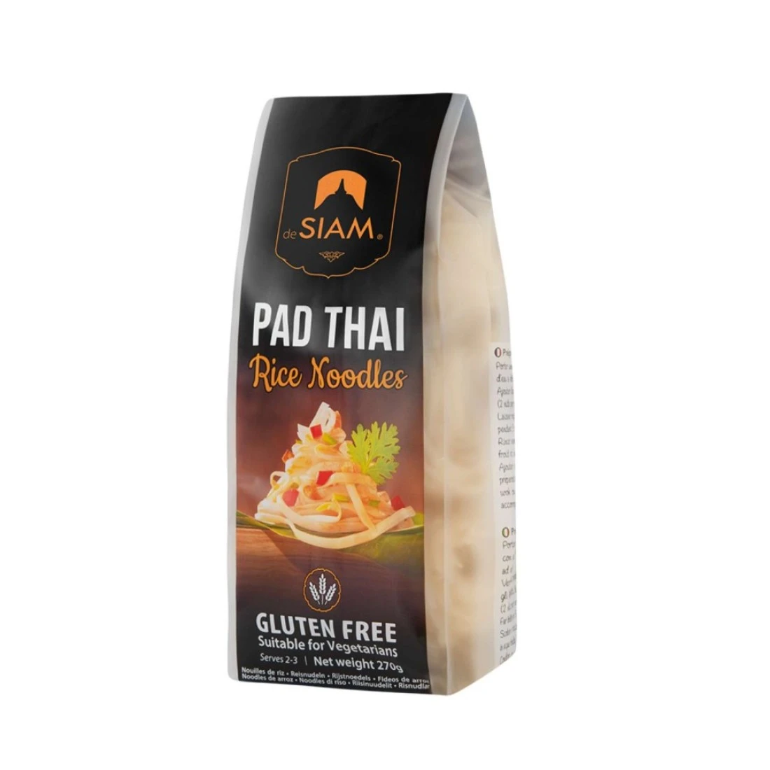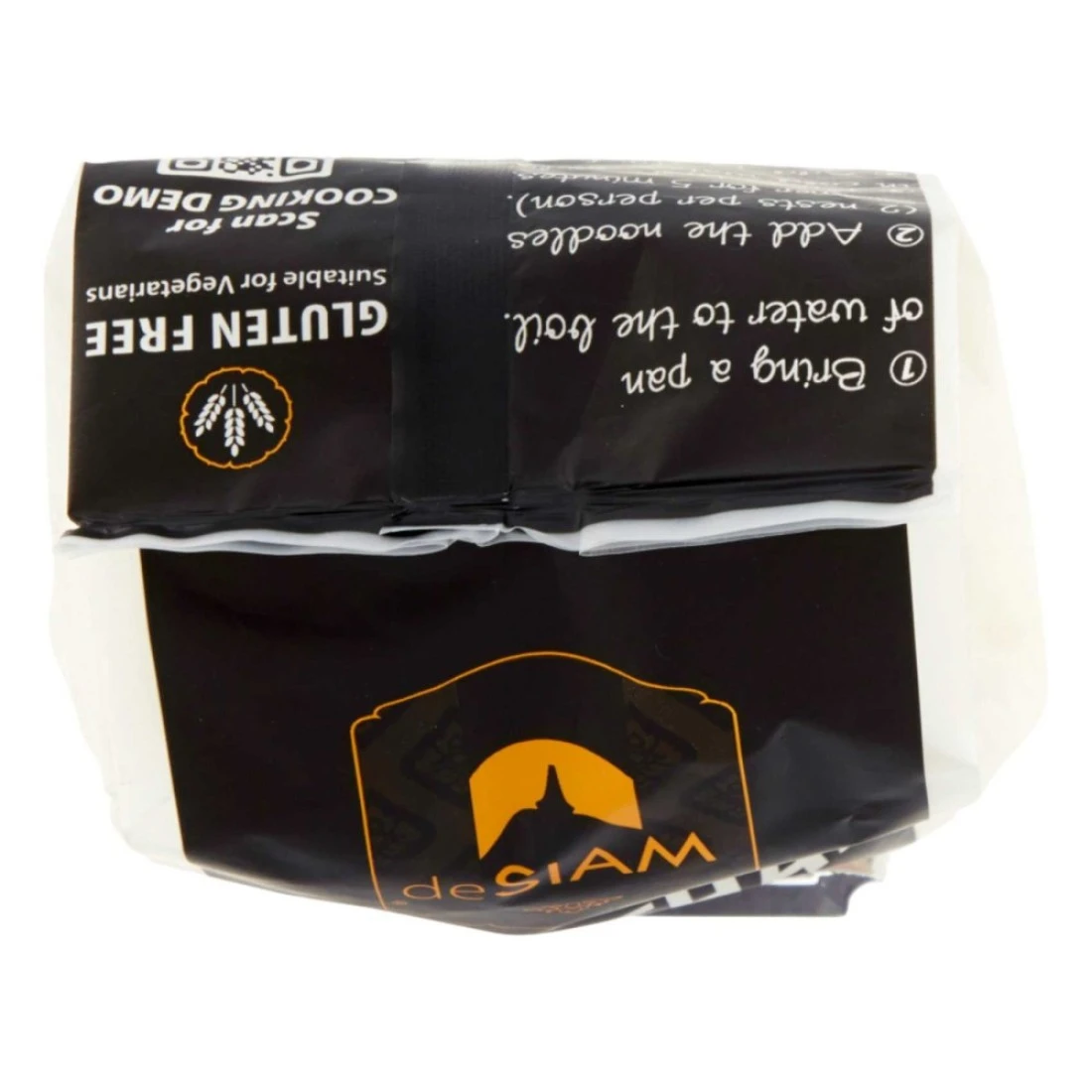 De Siam Pad Thai Rice Noodles are a popular Thai dish made from rice noodles stir-fried with ingredients such as shrimp tofu eggs and vegetables. These noodles are known for their sweet and tangy flavours and are often finished with a squeeze of lime and topped with crushed peanuts. De Siam Pad Thai Rice Noodles are easy to prepare and provide an authentic taste of Thailand in the comfort of your own home. The 270g pack is enough to serve two people making it a convenient and delicious meal option.