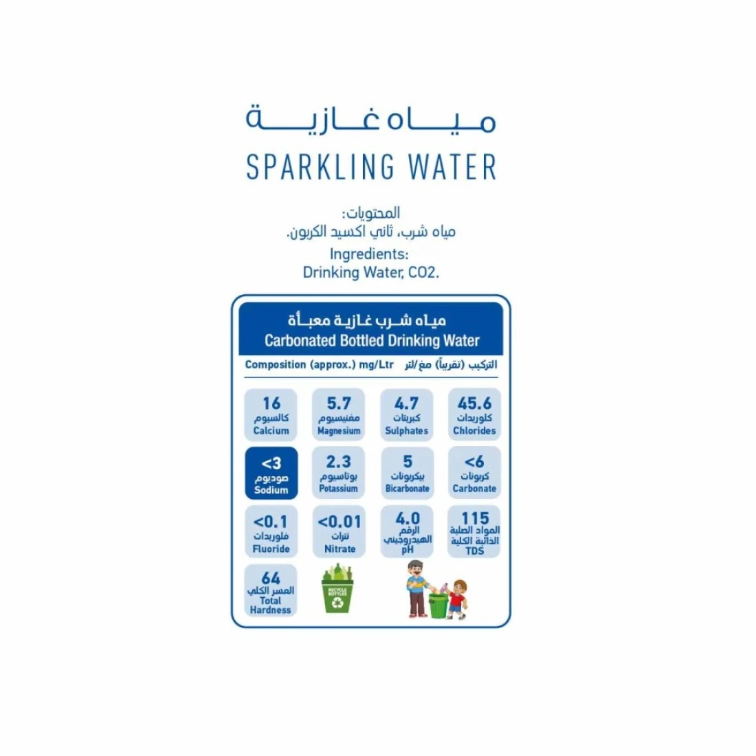 ingredients : Calcium 80mg/L, Magnesium 26mg/L, Potassium 1mg/L