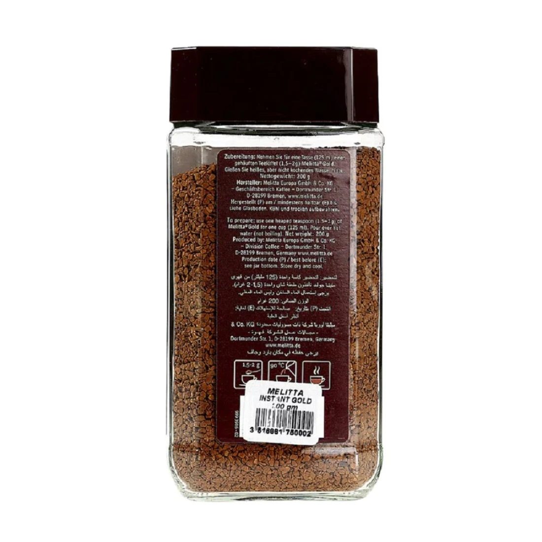 Melitta Instant Coffee Gold 200g is an instant coffee made from premium Arabica and Robusta coffee beans roasted and freeze-dried. This smooth and light coffee has an intense aroma and full-bodied flavour to give you a perfect moment of enjoyment. It comes in a resealable 200g packet that helps preserve its freshness.