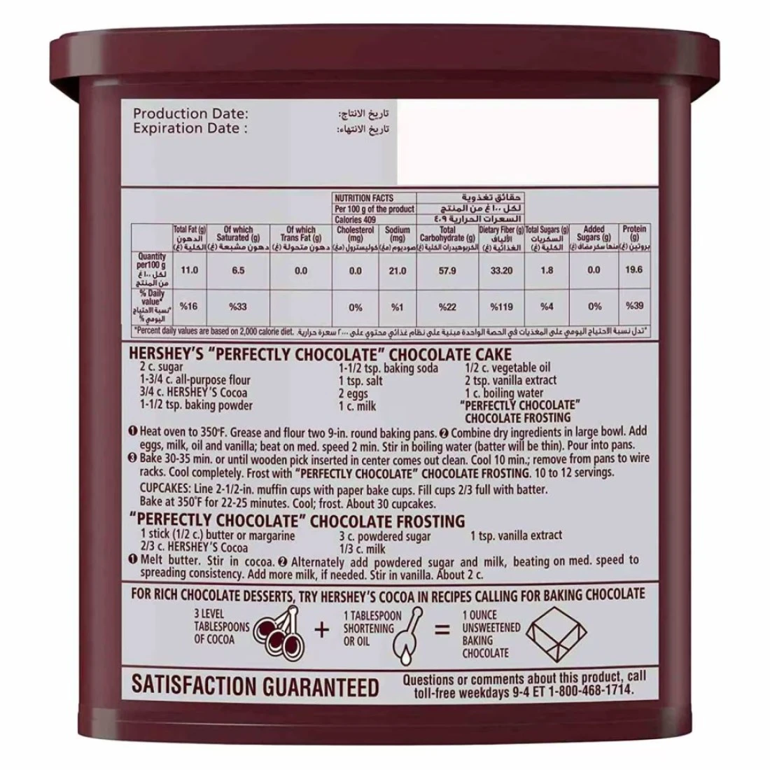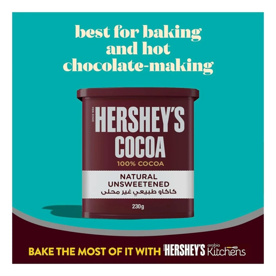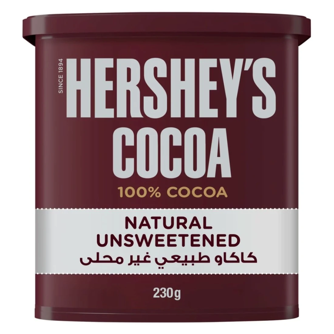 Hershey's Cocoa Natural Unsweetened is a 100% pure cocoa powder made from roasted cocoa beans. It is unsweetened, making it perfect for adding rich chocolate flavour to recipes without adding extra sugar. This 230g container is ideal for baking, cooking, and making delicious hot cocoa.