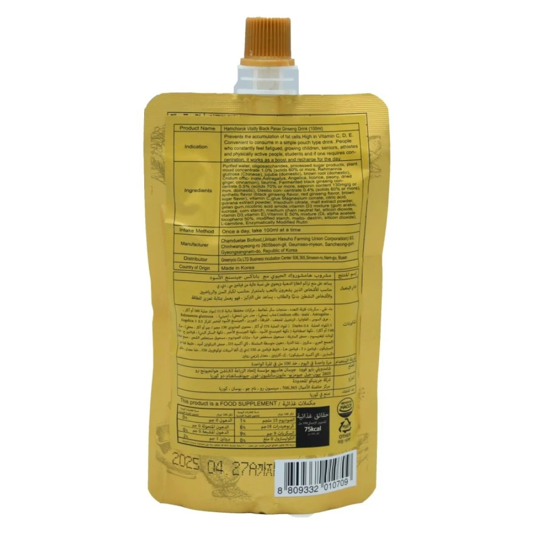 Hamchorok Vitality Black Panax Ginseng Drink is a premium health supplement designed to boost energy and overall vitality. Each 100ml pack contains concentrated extracts of high-quality black Panax ginseng, renowned for its adaptogenic properties and health benefits. This drink is perfect for those seeking to enhance their physical and mental performance, reduce fatigue, and support immune function. Ideal for busy lifestyles, Hamchorok Vitality Black Panax Ginseng Drink is a natural way to promote wellness and energy.