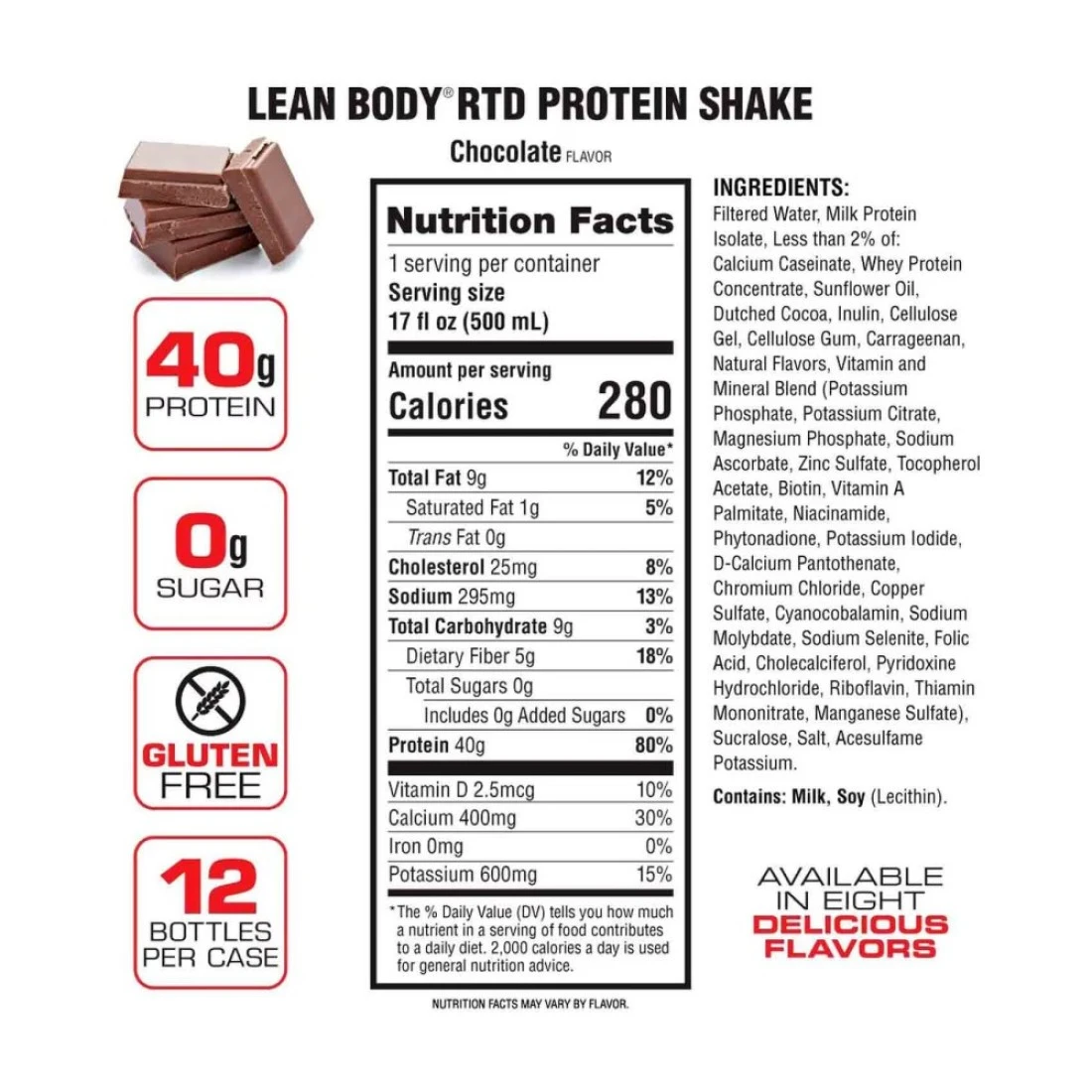 - Plus, this lean body high protein shake has a delicious chocolate flavour