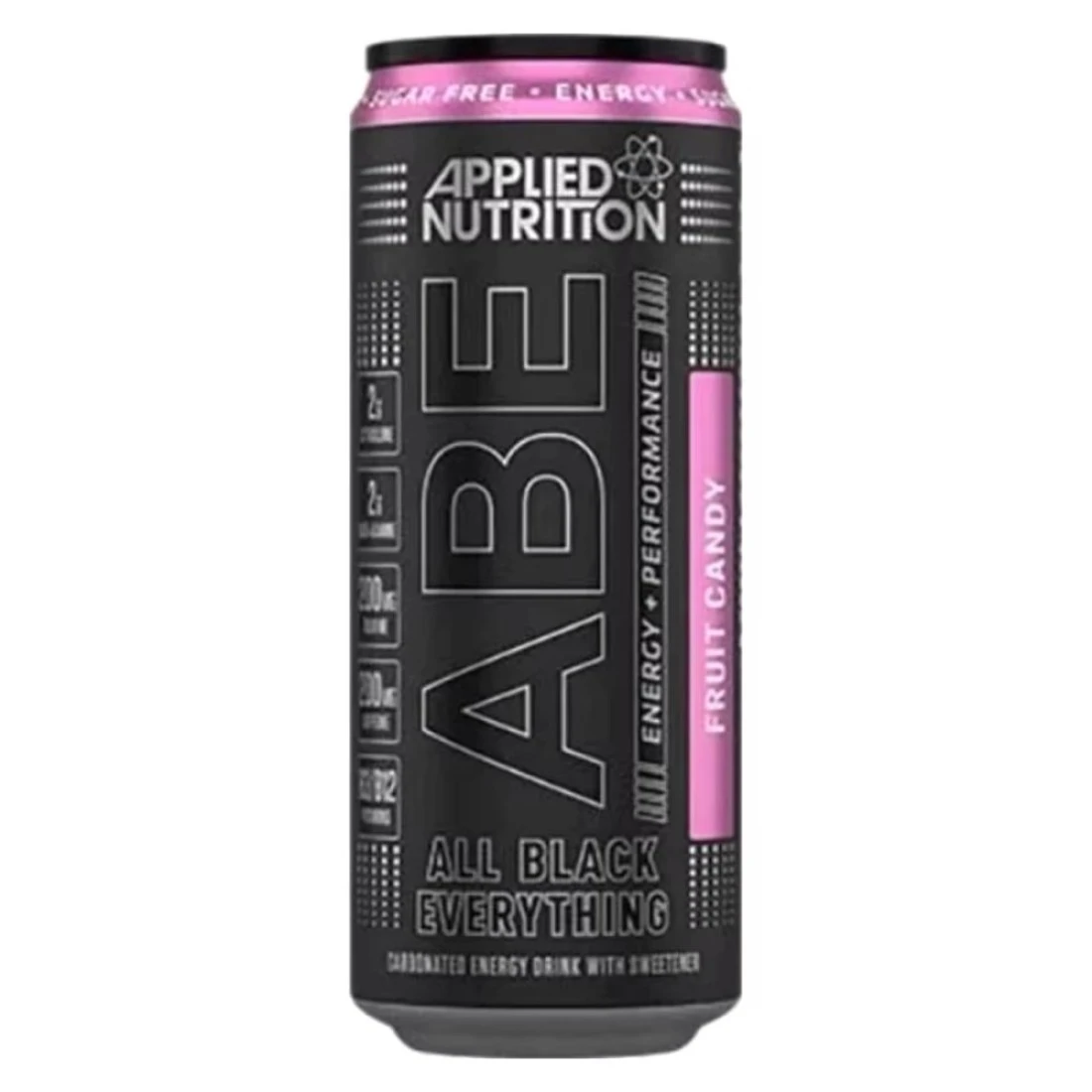 Applied Nutrition ABE All Black Everything Performance and Energy Zero Sugar Zero Calories Carbonated Energy Drink with Sweetener Fruit Candy 330ml