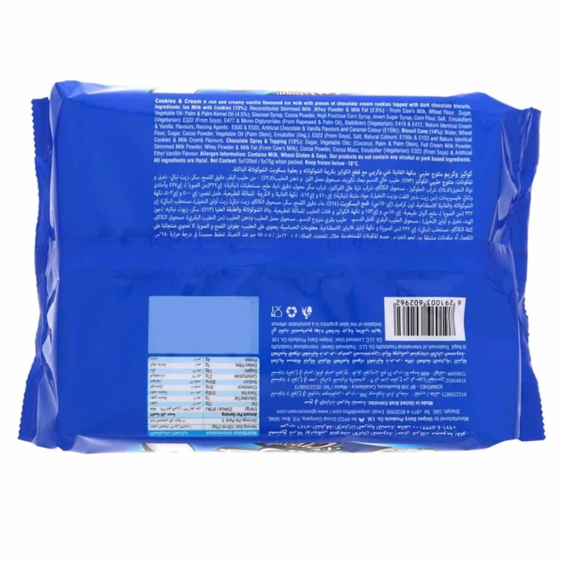 Igloo Cookies And Cream Ice Cream Cone is a delicious treat that combines the classic flavours of cookies and cream in a convenient cone. Each cone is filled with creamy cookies and cream ice cream, and topped with a crunchy cookie crumble. The pack of 5 cones is perfect for sharing with friends and family, or for enjoying as a sweet indulgence on your own. The cookies and cream ice cream in these cones are made with real cookies, giving it an authentic and rich flavour. The creamy texture of the ice cream pairs perfectly with the crunchy cookie crumble, creating a satisfying and enjoyable eating experience. Each cone is individually wrapped, making them easy to take on the go or enjoy at home. Whether you're craving a sweet treat after dinner or looking for a refreshing snack on a hot day, Igloo Cookies And Cream Ice Cream Cone is a great choice. With its delicious cookies and cream flavour and convenient packaging, it's sure to become a favorite in your freezer. Treat yourself to a pack of 5 cones and enjoy the creamy, crunchy goodness today!