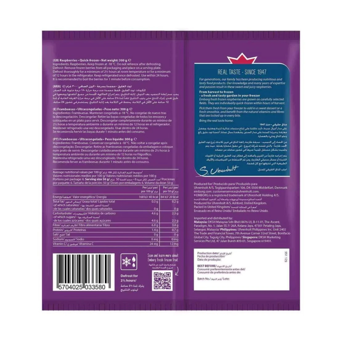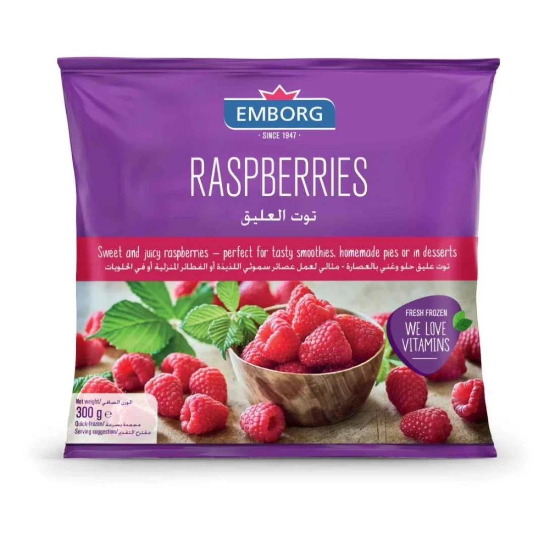 - Enjoy the sweet taste and excellent nutritional benefits of Emborg fresh frozen raspberries in smoothies muffins and other baked goods