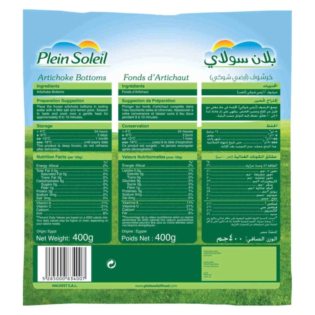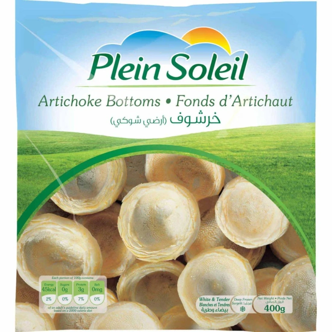 Plein Soleil Artichoke Bottoms are tender and flavourful artichoke hearts, ready to use in a variety of dishes. This pack contains artichoke bottoms, each weighing 400g, making it convenient and versatile for cooking.