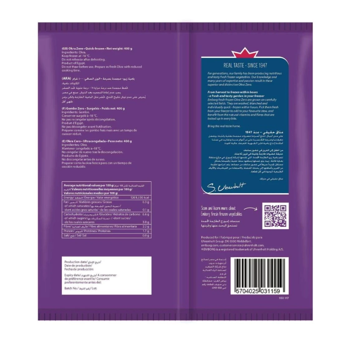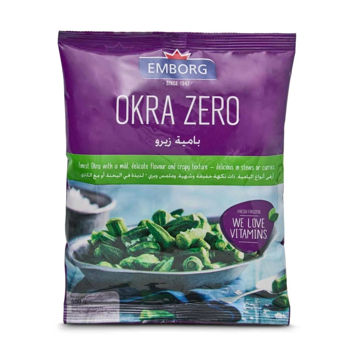 Emborg Okra Zero is a delicious and convenient way to enjoy the taste of okra. This 400g pack is perfect for adding to soups, stews, or stir-fries. The okra is carefully selected and packed to ensure maximum freshness and flavour. With Emborg Okra Zero, you can enjoy the natural goodness of okra without any added preservatives or artificial flavours. Okra is a versatile vegetable that can be used in a variety of dishes. It has a mild, slightly sweet flavour and a unique texture that adds a nice crunch to any meal. Emborg Okra Zero is a convenient option for those who want to incorporate more vegetables into their diet. Whether you're a vegetarian, vegan, or just looking to add more plant-based foods to your meals, Emborg Okra Zero is a great choice. Emborg Okra Zero is also a great source of vitamins and minerals. It is rich in vitamin C, vitamin K, and folate, which are essential for overall health and well-being. Additionally, okra is low in calories and high in fibre, making it a great option for those looking to maintain a healthy weight or improve their digestion. With Emborg Okra Zero, you can enjoy all the nutritional benefits of okra conveniently and deliciously.