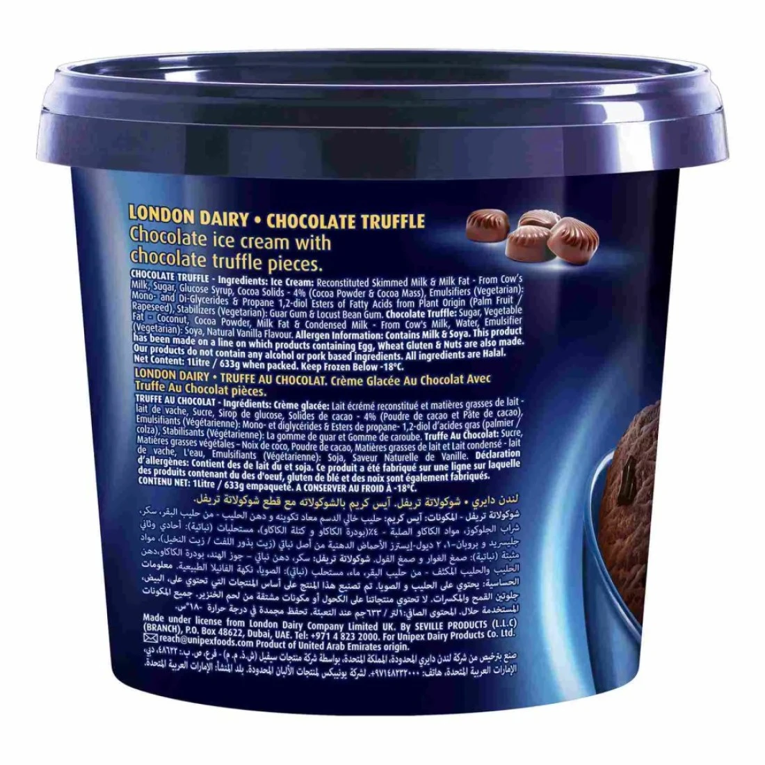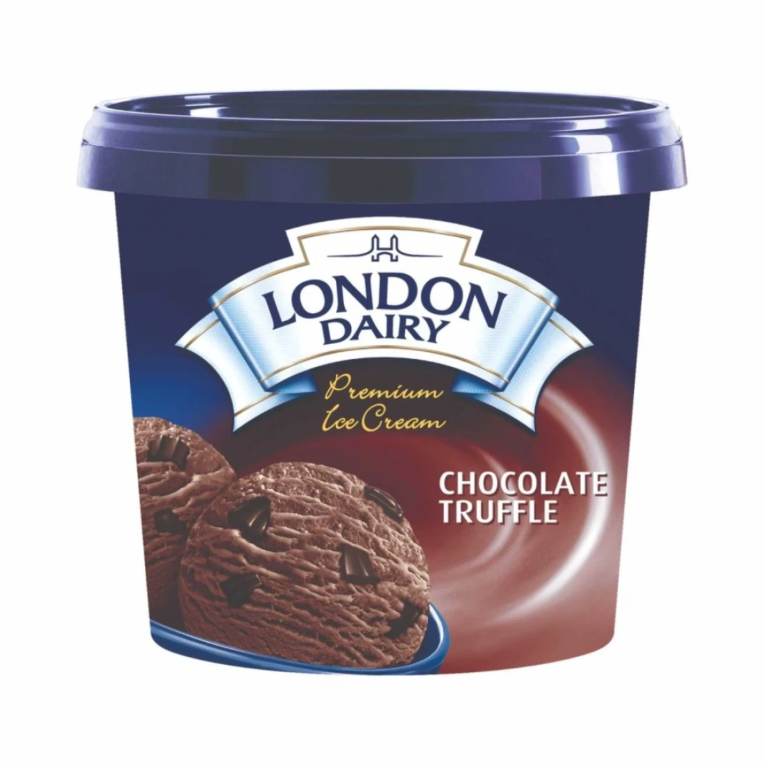 - Indulge in the rich and creamy London Dairy Chocolate Truffle Premium Ice Cream, crafted with high-quality ingredients for an exquisite taste experience