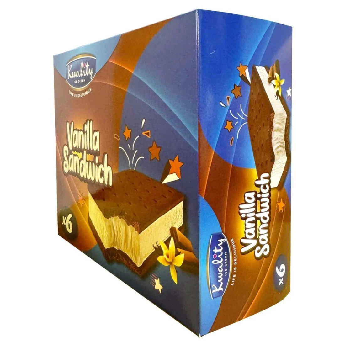 - Indulge in the creamy delight of Kwality Vanilla Sandwich Ice Cream
