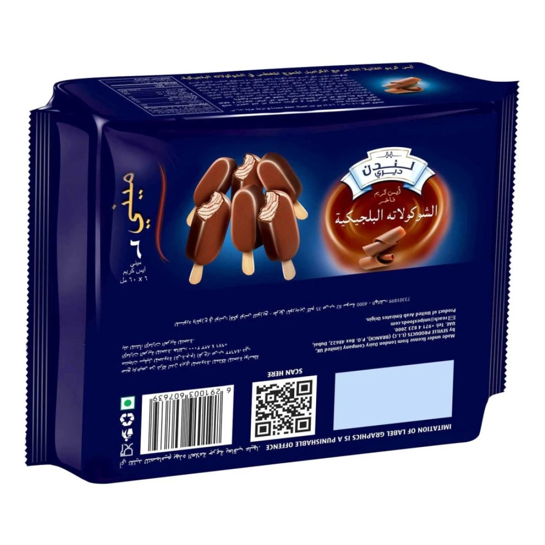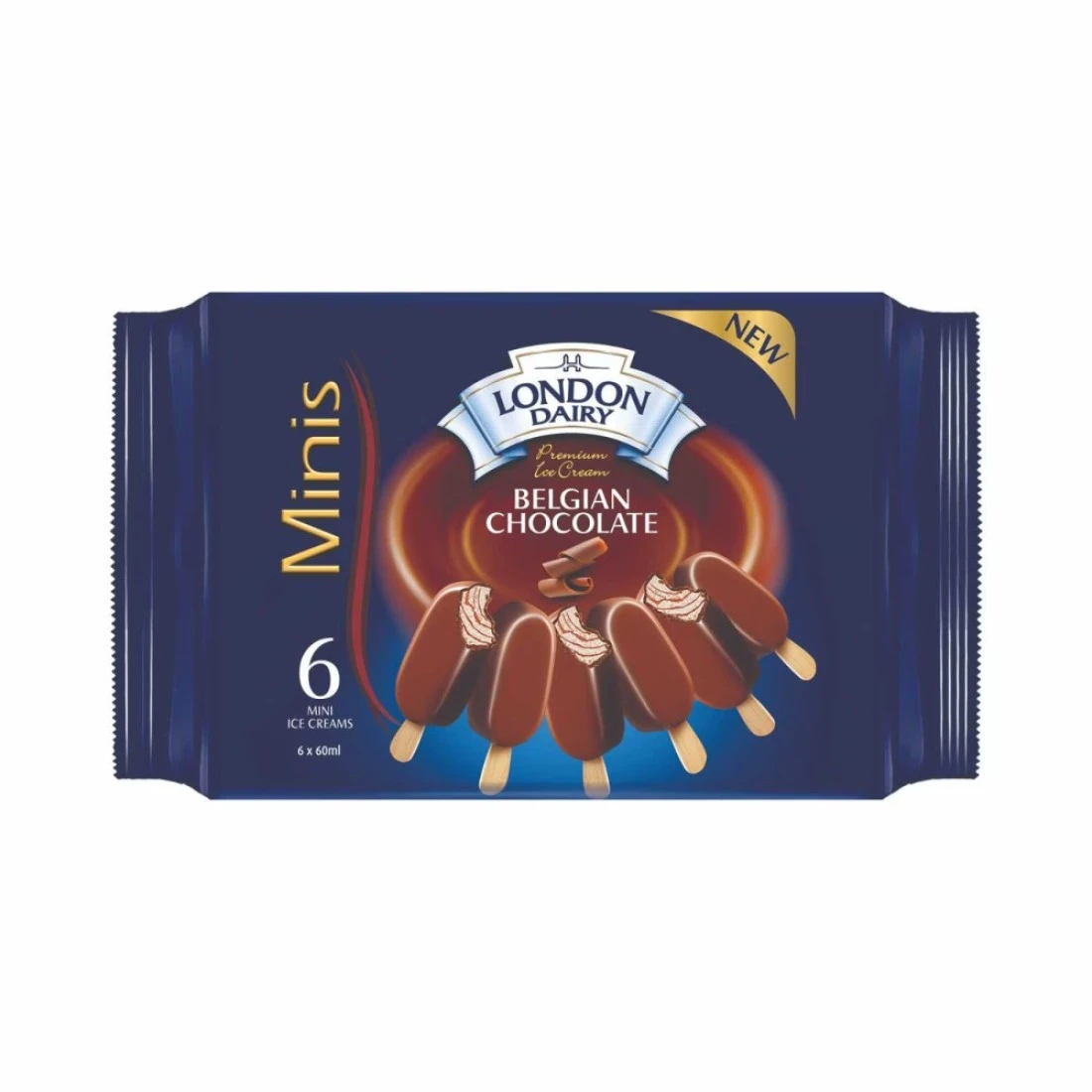 London Dairy Belgian Chocolate Ice Cream Bar, 60ml Pack of 6