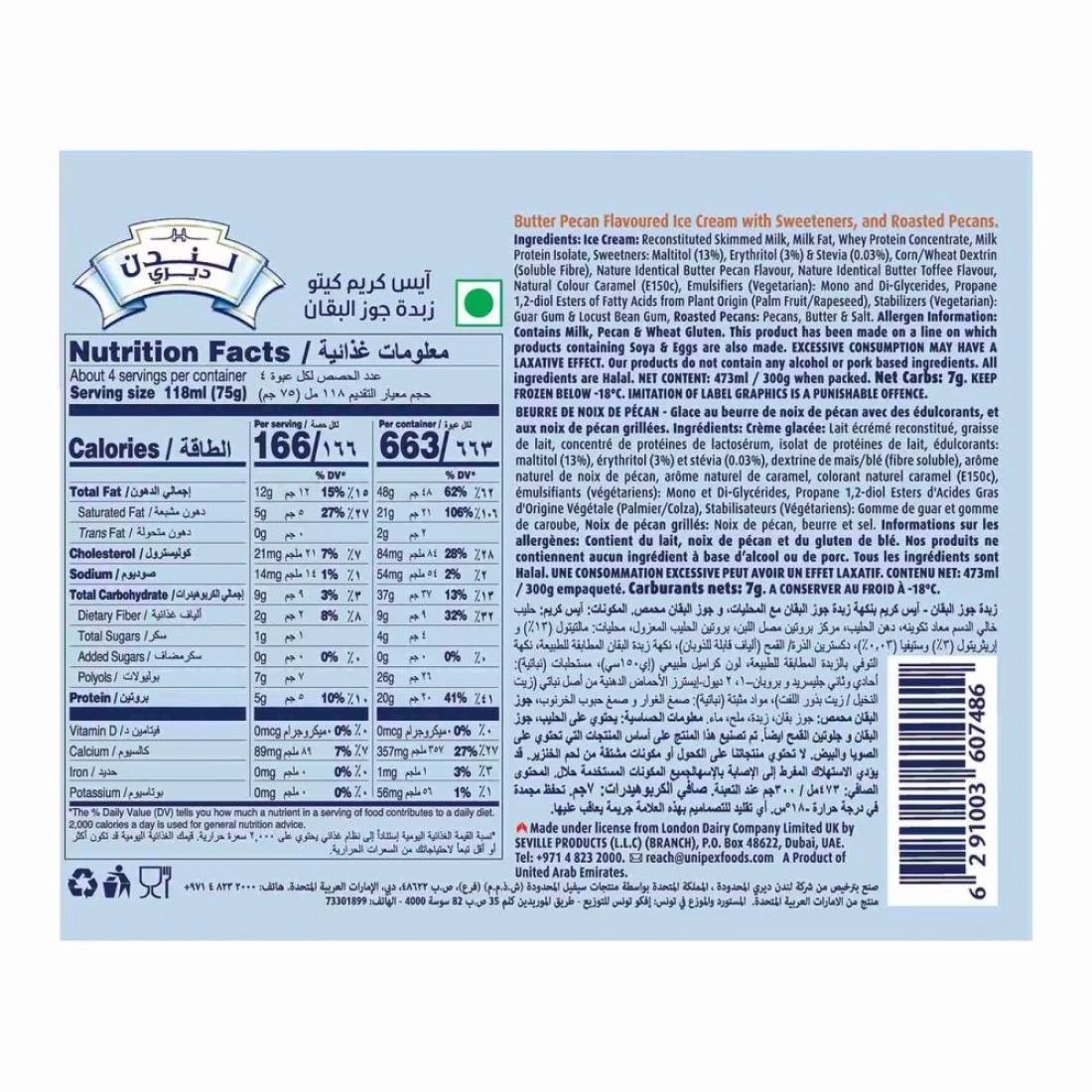 London Dairy Keto Butter Pecan Ice Cream, 473ml