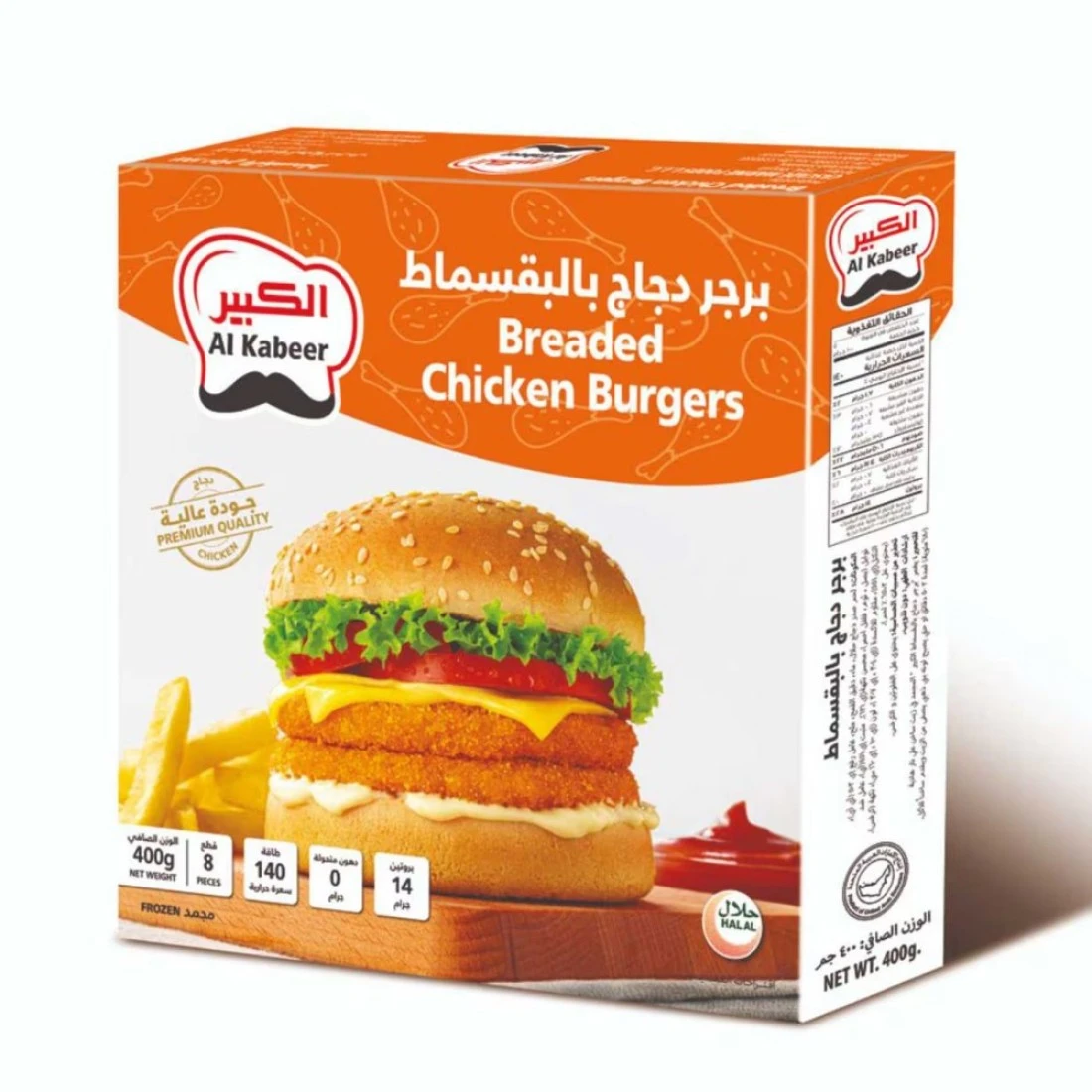- Make mouthwatering and delicious chicken burgers at home with the Al Kabeer Eight Breaded Chicken Burgers.