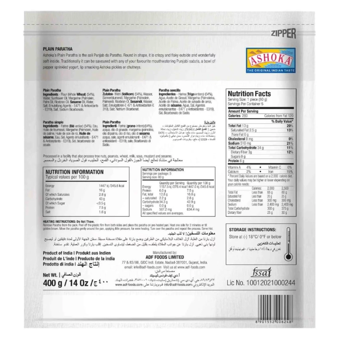 Ashoka Plain Paratha 400g Pack of 3 is a delicious and convenient option for those looking to enjoy authentic Indian cuisine at home. These parathas are made with high-quality ingredients and are perfect for breakfast, lunch, or dinner. Each pack contains 3 parathas, making it easy to enjoy a quick and satisfying meal. Simply heat them up in a pan or microwave and pair them with your favorite curry or chutney for a tasty and filling dish. Whether you're a fan of Indian food or just looking to try something new, Ashoka Plain Paratha 400g Pack of 3 is a great choice. Stock up on these parathas and have a delicious meal ready in minutes!
