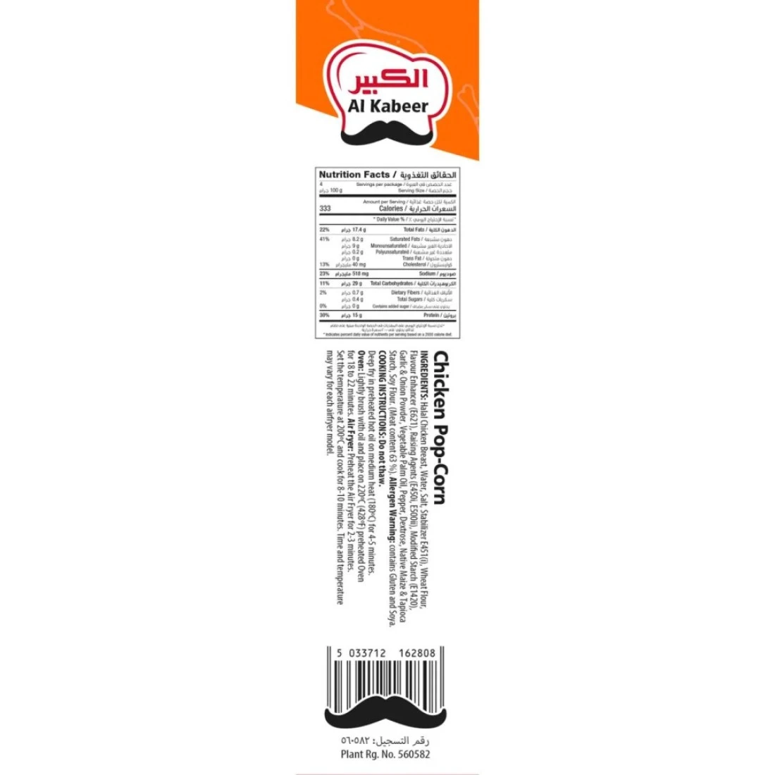 Introducing Al Kabeer Chicken Popcorn, a delicious and convenient snack option for chicken lovers. Made from tender, juicy chicken pieces, these bite-sized popcorns are perfect for parties, movie nights, or anytime you crave a tasty treat. With a crispy coating and savoury flavour, Al Kabeer Chicken Popcorn is sure to be a hit with both kids and adults. Each pack of Al Kabeer Chicken Popcorn contains 400g of mouth-watering goodness. These bite-sized chicken pieces are easy to prepare - simply bake or fry them for a few minutes, and they're ready to be enjoyed. Whether you're hosting a gathering or looking for a quick and easy snack option, Al Kabeer Chicken Popcorn is the perfect choice. With Al Kabeer Chicken Popcorn, you can enjoy the taste of restaurant-style popcorn chicken in the comfort of your own home. Made from high-quality ingredients and packed with flavour, these chicken popcorns are a delicious and satisfying snack option. Treat yourself to Al Kabeer Chicken Popcorn and indulge in a truly delicious experience.