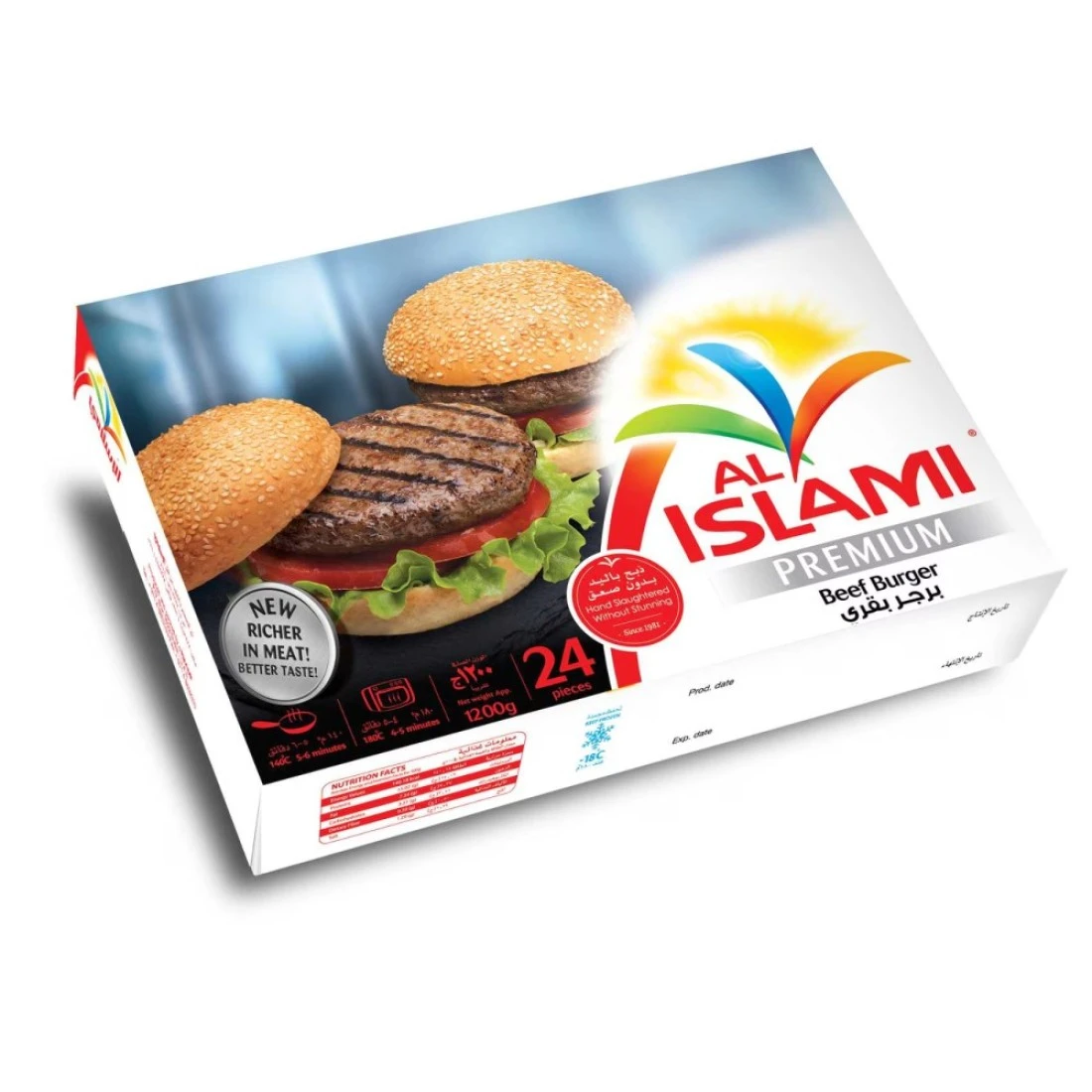 The Al Islami Beef Burger is a delicious and juicy burger made from premium quality beef. It is packed with flavour and is perfect for grilling or pan-frying. The burger is made from 100% Halal beef, ensuring that it meets the highest standards of quality and taste. It is a great option for a quick and easy meal, whether you're cooking for yourself or a crowd. The Al Islami Beef Burger comes in a convenient 1200g pack, making it ideal for stocking up your freezer. Each burger is individually wrapped, allowing you to easily take out as many as you need without thawing the entire pack. The burgers are also easy to cook, taking just a few minutes on each side to achieve a perfectly cooked patty. With its generous size and delicious taste, the Al Islami Beef Burger is sure to satisfy your cravings. Whether you're hosting a barbecue, preparing a weeknight dinner, or simply craving a delicious burger, the Al Islami Beef Burger is the perfect choice. Its high-quality ingredients, convenient packaging, and mouth-watering taste make it a staple in many households. So why wait? Grab a pack of Al Islami Beef Burgers today and enjoy a flavourful and satisfying meal.