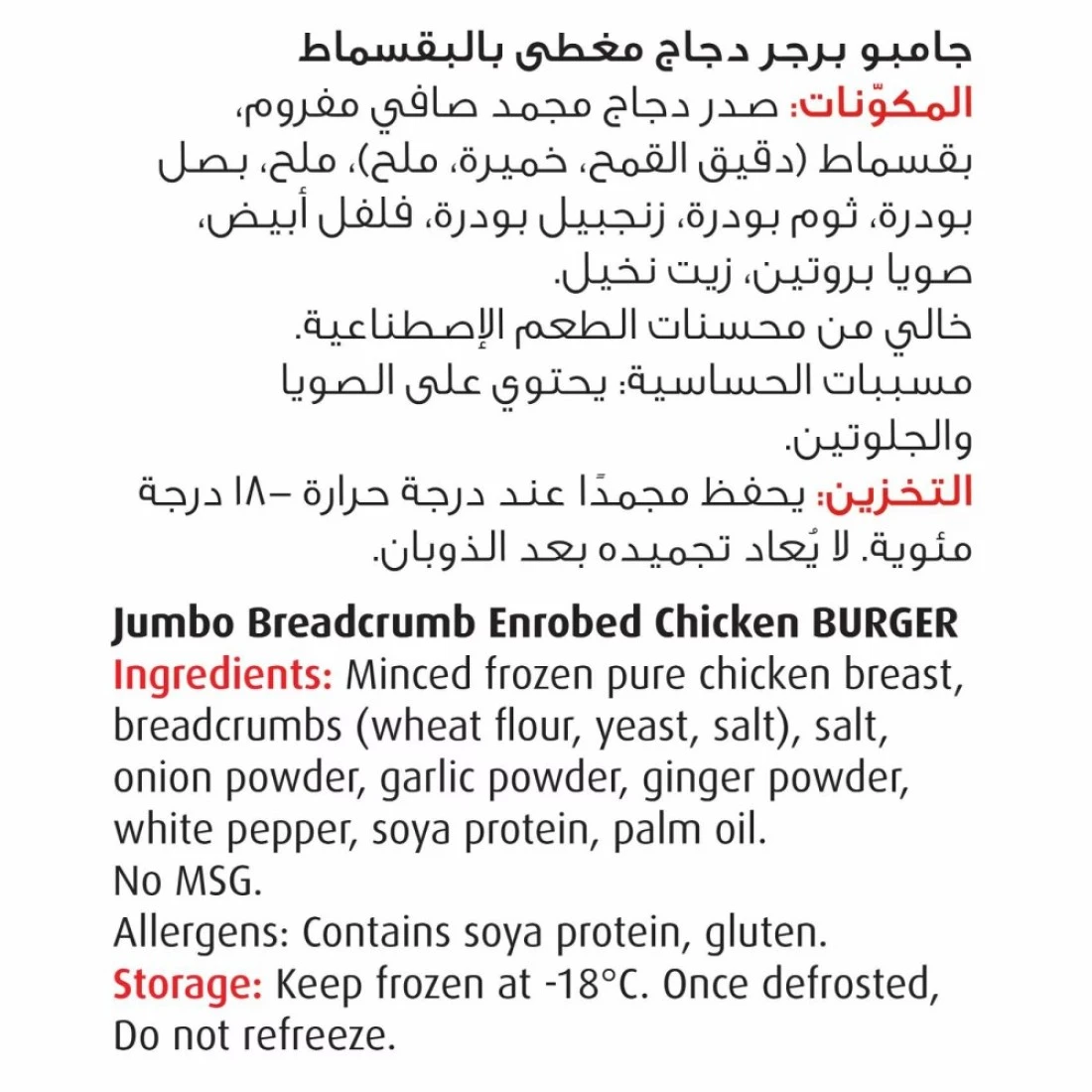 ingredients : 100% Chicken Breast, Bun, Spices