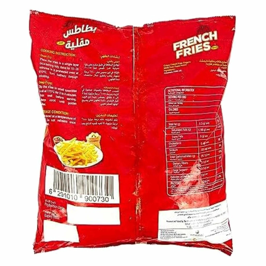 Al Areesh French Fries 2.5kg offers a convenient and delicious option for those seeking a tasty snack or side dish. These perfectly cut, golden fries are made from high-quality potatoes, ensuring a crispy exterior and fluffy interior. Ideal for frying, baking, or air frying, they deliver a satisfying crunch with every bite. Whether served alongside burgers, in a wrap, or as a standalone treat, Al Areesh French Fries are sure to please both kids and adults alike. Perfect for parties, gatherings, or family meals, this 2.5kg pack provides ample servings for any occasion. Enjoy a quick and easy meal solution with Al Areesh!