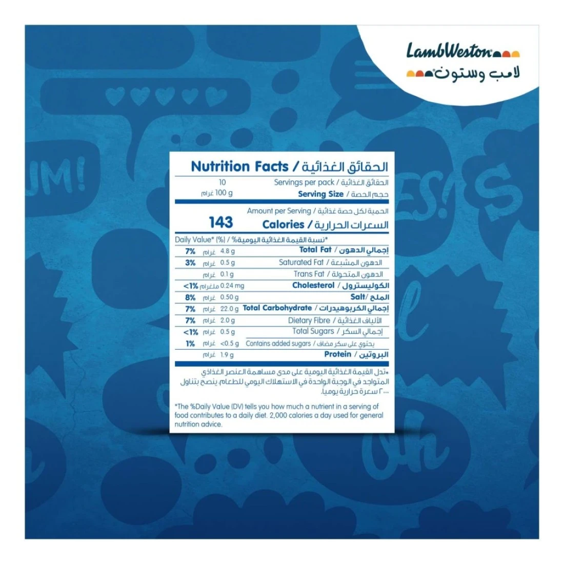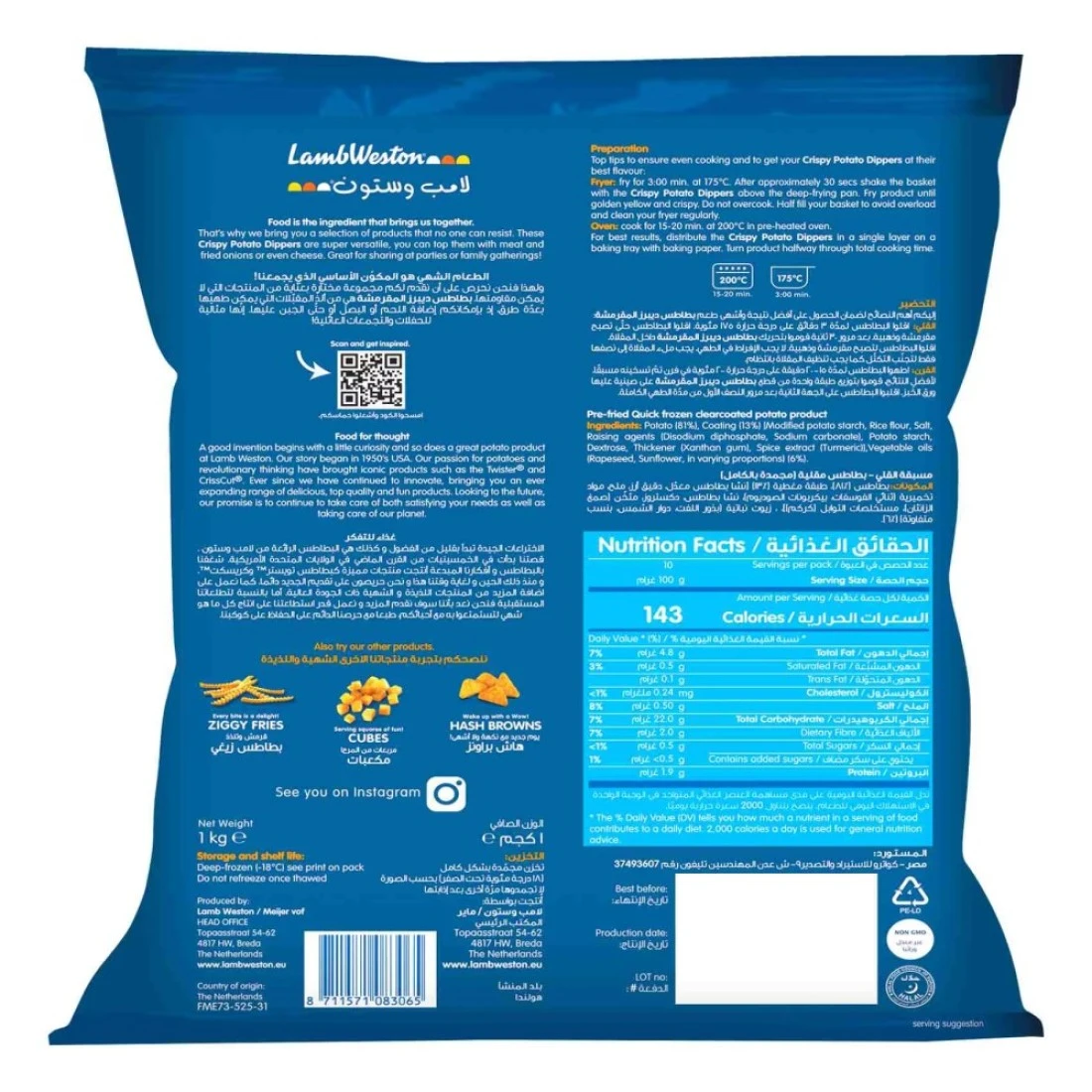 Lamb Weston Potato Dippers are a delicious and convenient snack option. Made from high-quality potatoes, these dippers are cut into a unique shape that is perfect for dipping into your favorite sauces or toppings. The pack contain 1kg bags, making it ideal for parties or gatherings. Whether you're hosting a game night or simply looking for a tasty snack, Lamb Weston Potato Dippers are sure to satisfy your cravings.