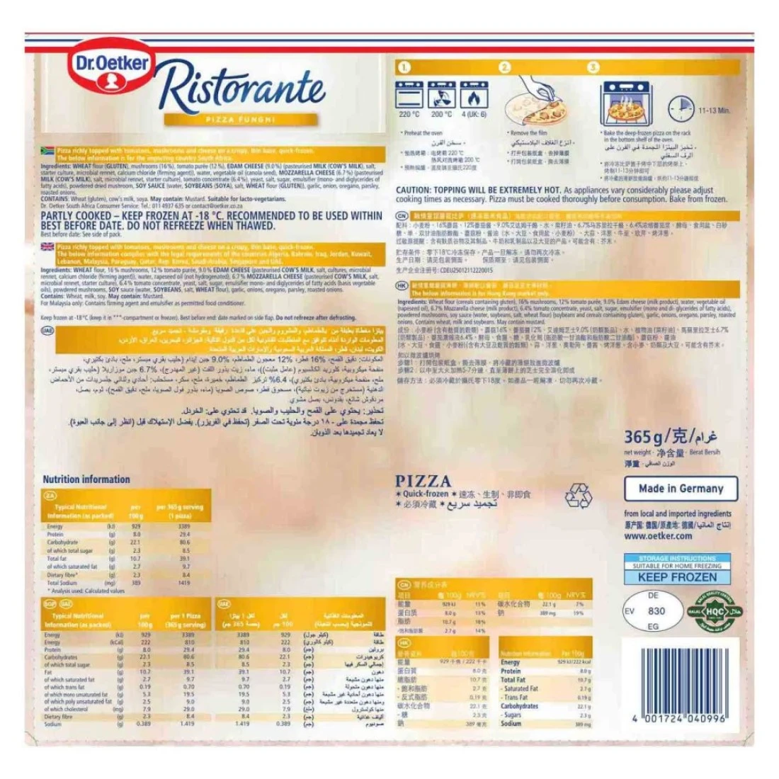 Dr.Oetker Funghi Pizza is a delicious and convenient option for pizza lovers. It comes in a 356g size, making it perfect for a quick and easy meal. The pizza is topped with a generous amount of mushrooms, giving it a rich and savoury flavour. Whether you're hosting a party or just looking for a tasty dinner option, Dr.Oetker Funghi Pizza is sure to satisfy your cravings. Made with high-quality ingredients, Dr.Oetker Funghi Pizza is a great choice for those who value taste and convenience. The crust is thin and crispy, providing the perfect base for the flavourful toppings. With just a few minutes in the oven, you can enjoy a hot and delicious pizza that tastes like it came straight from a pizzeria. Dr.Oetker Funghi Pizza is a versatile option that can be enjoyed on its own or customized with your favorite toppings. Add some extra cheese, vegetables, or even some spicy pepperoni to make it your own. No matter how you choose to enjoy it, Dr.Oetker Funghi Pizza is a tasty and convenient option that is sure to please.