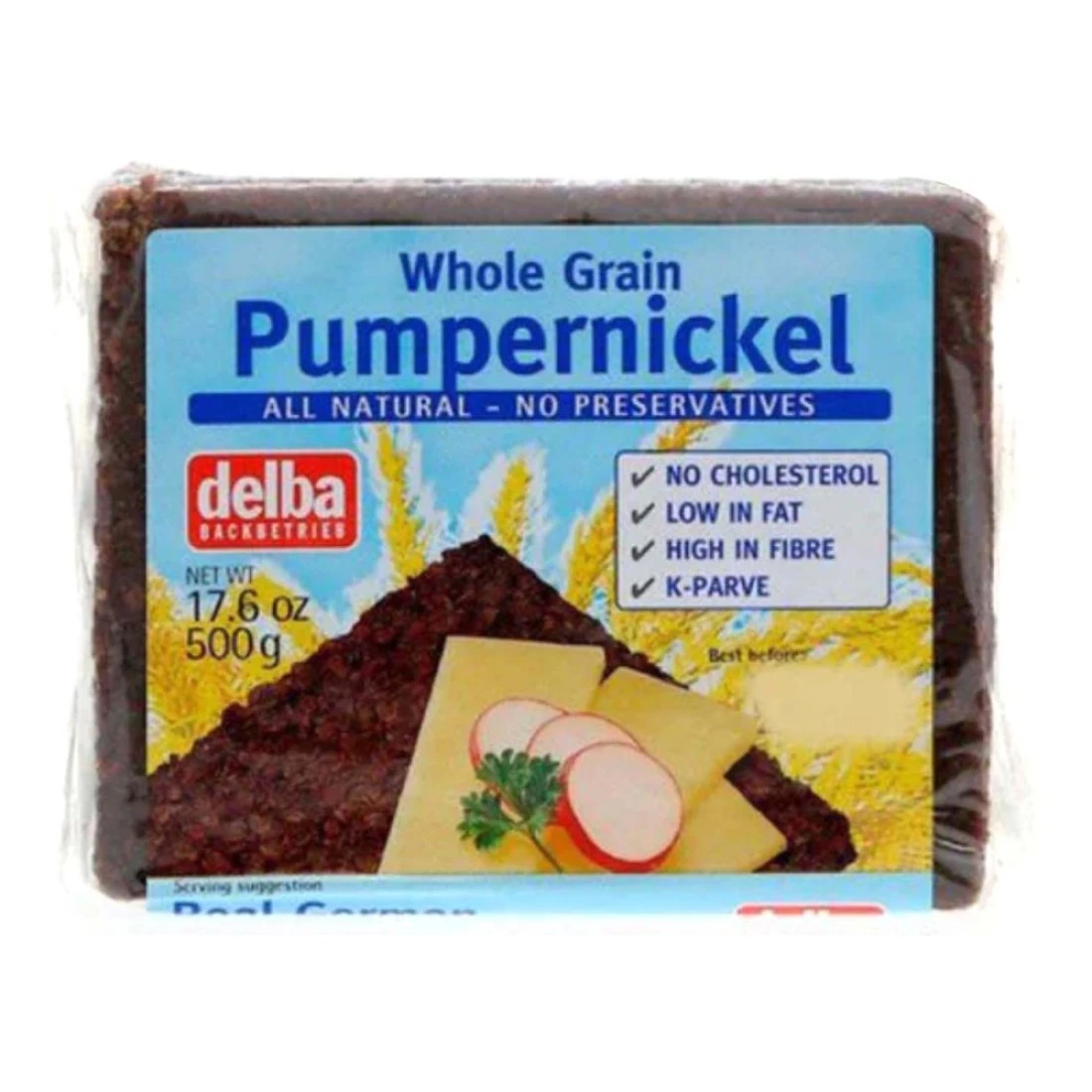 - The Delba wholegrain pumpernickel bread is made from the choicest of wholegrain rye and gently baked to form a crusty exterior