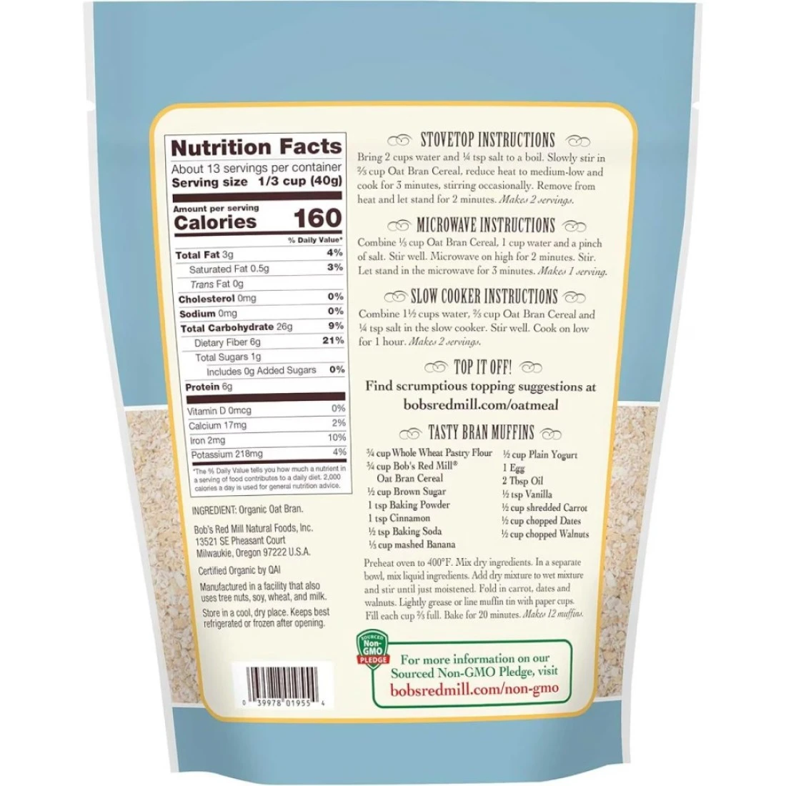 Bob's Red Mill Organic High Fiber Oat Bran Hot Cereal Non-GMO 510g