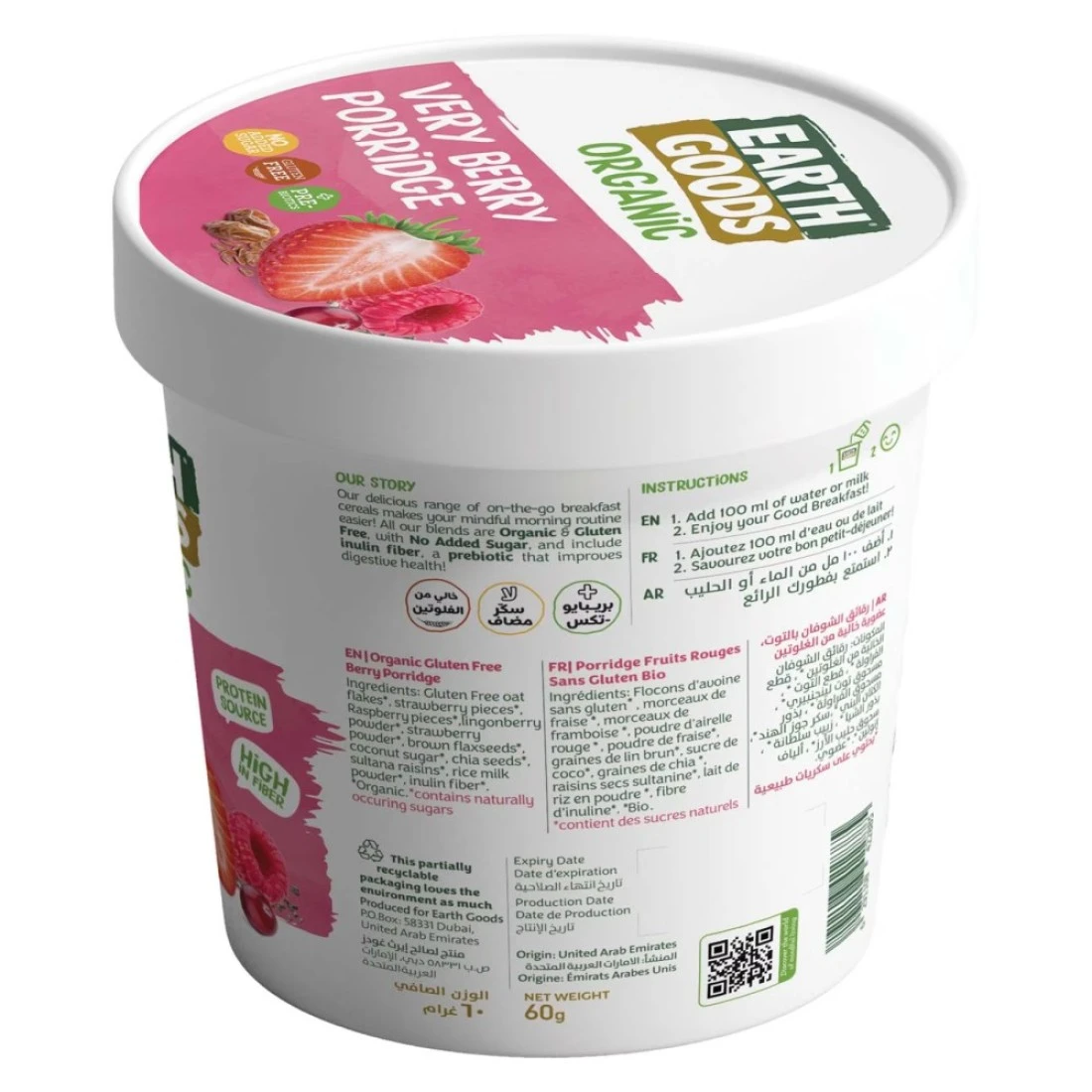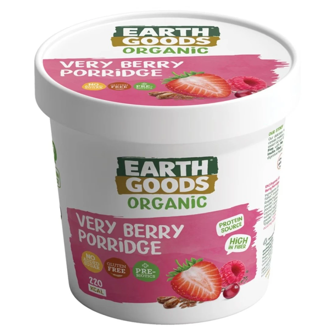 Earth Goods Organic Gluten Free Very Berry Porridge is a delicious and nutritious breakfast option made with organic whole grains and a mix of berries. This porridge is gluten-free and packed with fibre, vitamins, and minerals. It is a convenient and healthy way to start your day and provides sustained energy.