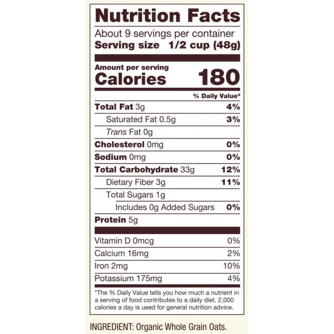 ingredients : Organic Whole Grain Oats