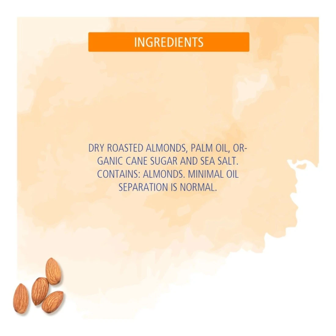 ingredients : Dry Roasted Almonds, Palm Oil, Organic Cane Sugar and Sea Salt